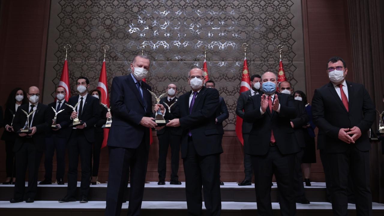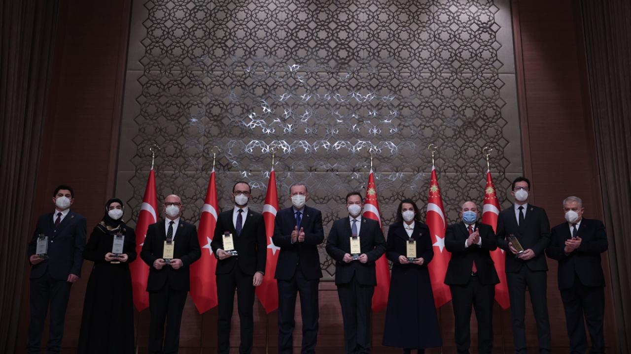 Cumhurbaşkanı Erdoğan Prof. Dr. Ahmet Can Altunışık`a ödülünü verdi.