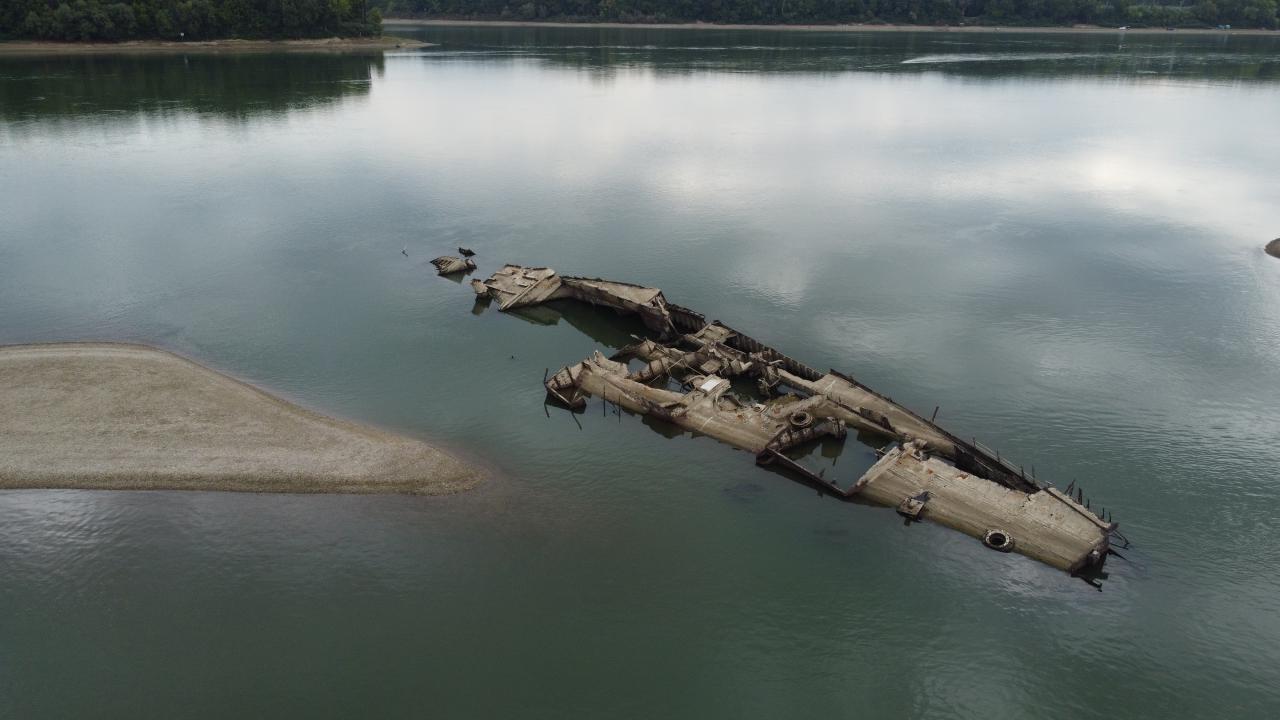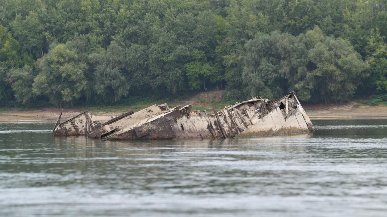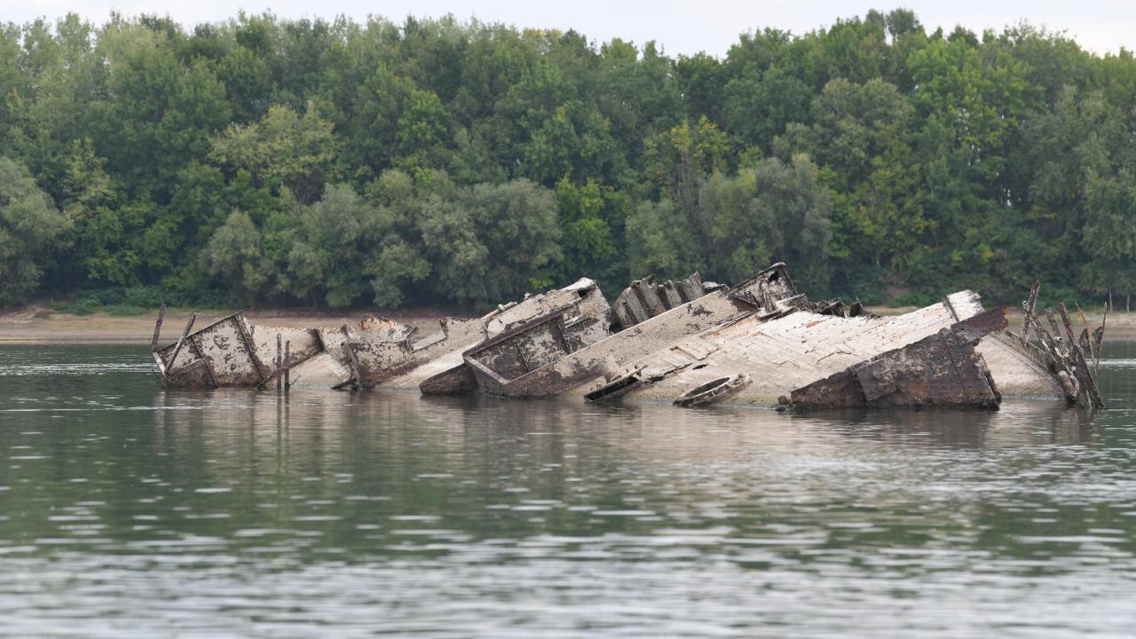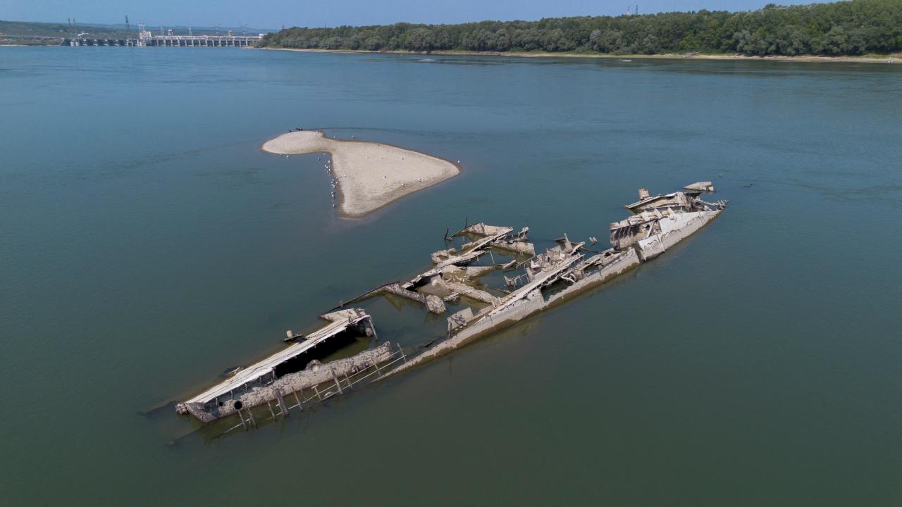 Sırbistan'ın doğusundaki Prahovo'dan geçen Tuna Nehri'nde suyun çekilmesiyle İkinci Dünya Savaşı'ndan kalma bir Alman savaş gemisinin kalıntısı gün yüzüne çıktı.
