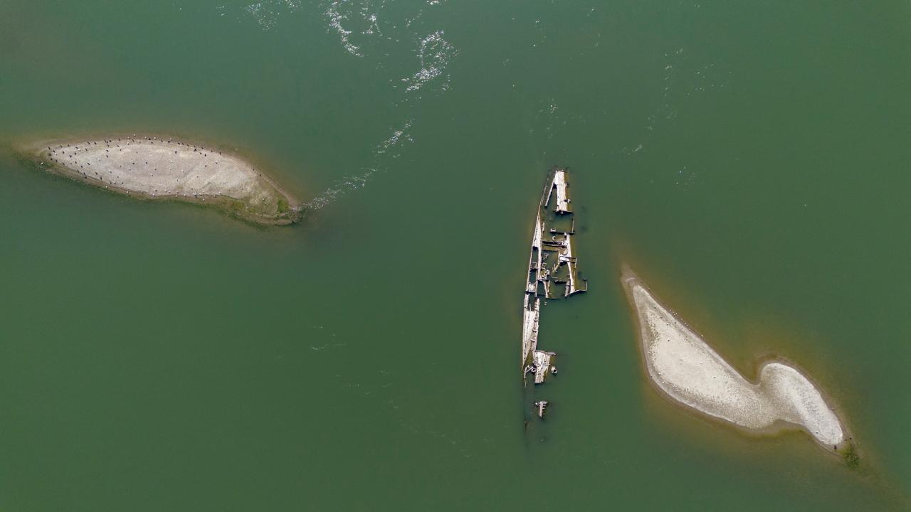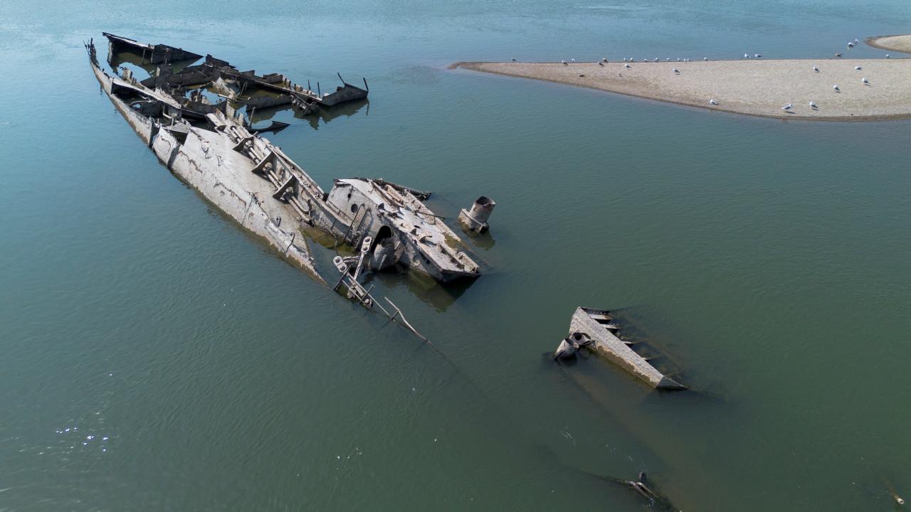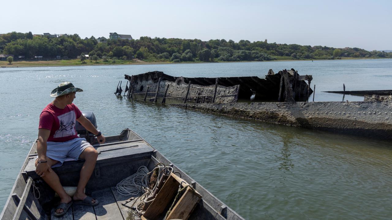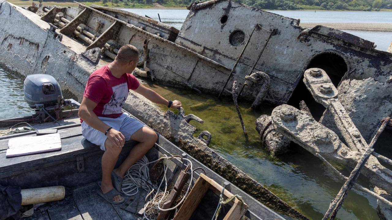 Sırbistan'ın doğusundaki Prahovo'dan geçen Tuna Nehri'nde suyun çekilmesiyle İkinci Dünya Savaşı'ndan kalma bir Alman savaş gemisinin kalıntısı gün yüzüne çıktı.
