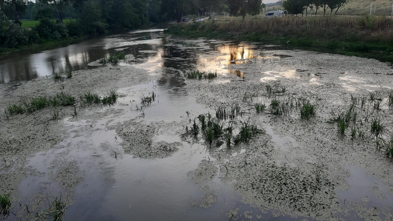 Su seviyesinin düşmesine bağlı olarak nehir yatağında kum adacıkları oluştu, çöpler gün yüzüne çıktı ve yüzeyi yosunlarla kaplandı.