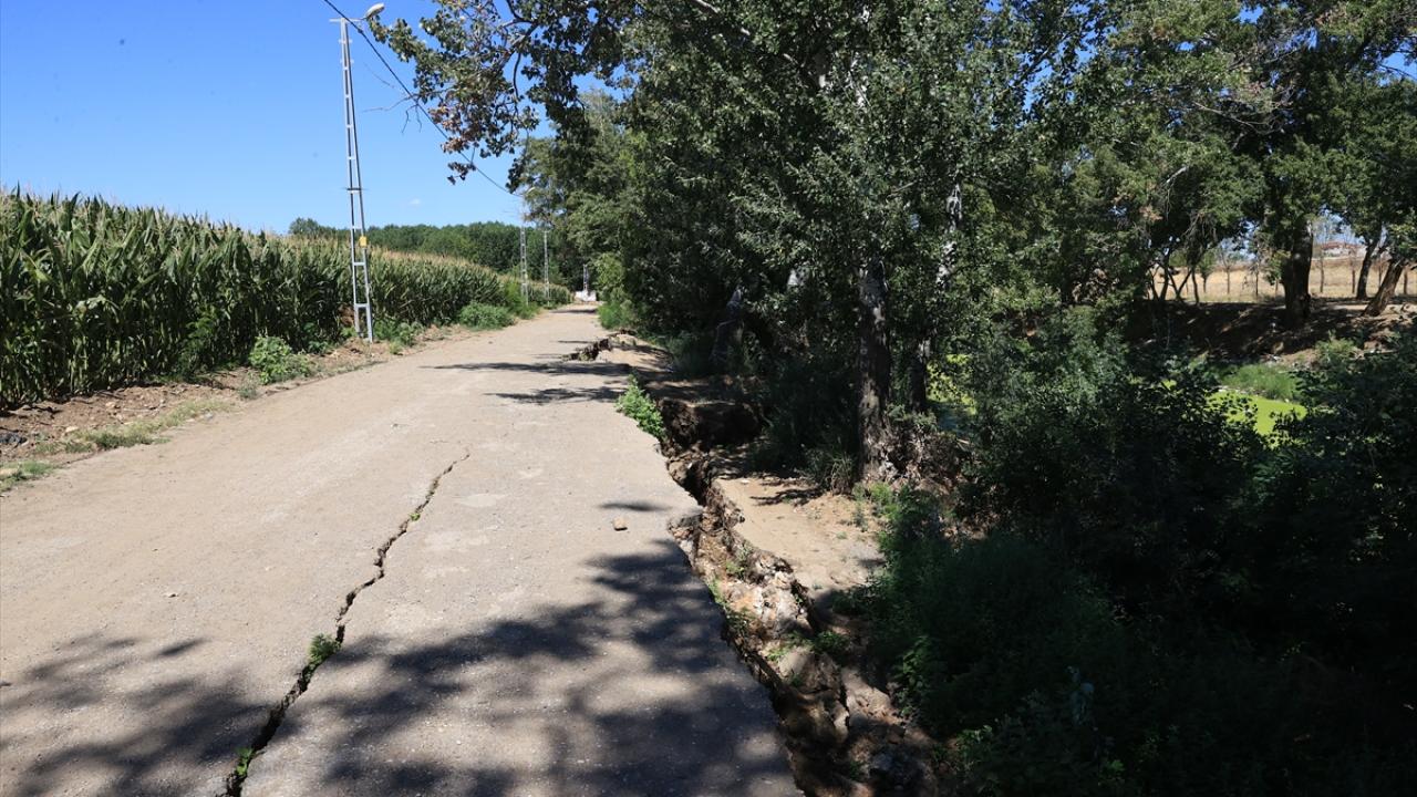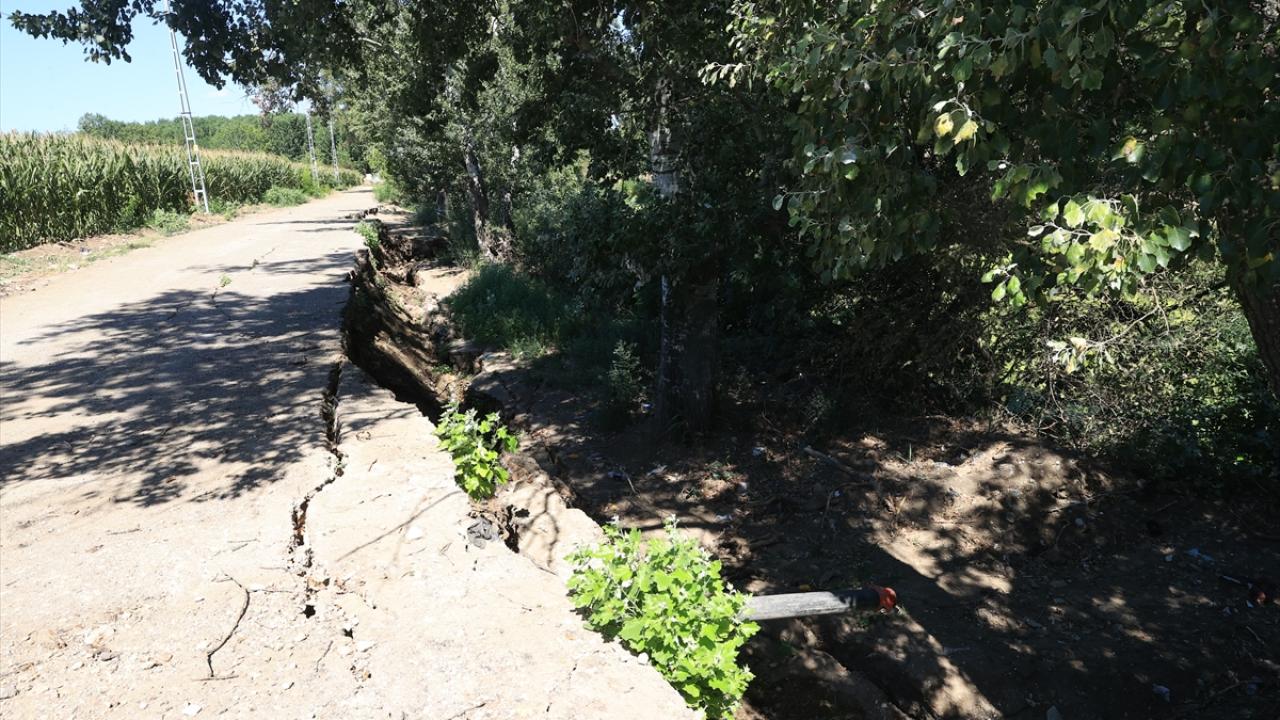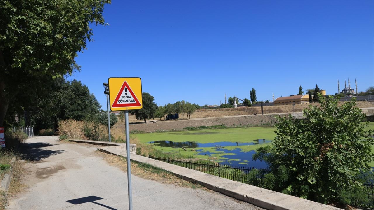 Öte yandan su seviyesi kritik noktalara düşen Tunca Nehri`nin kenarındaki yolda çökme oluştu.