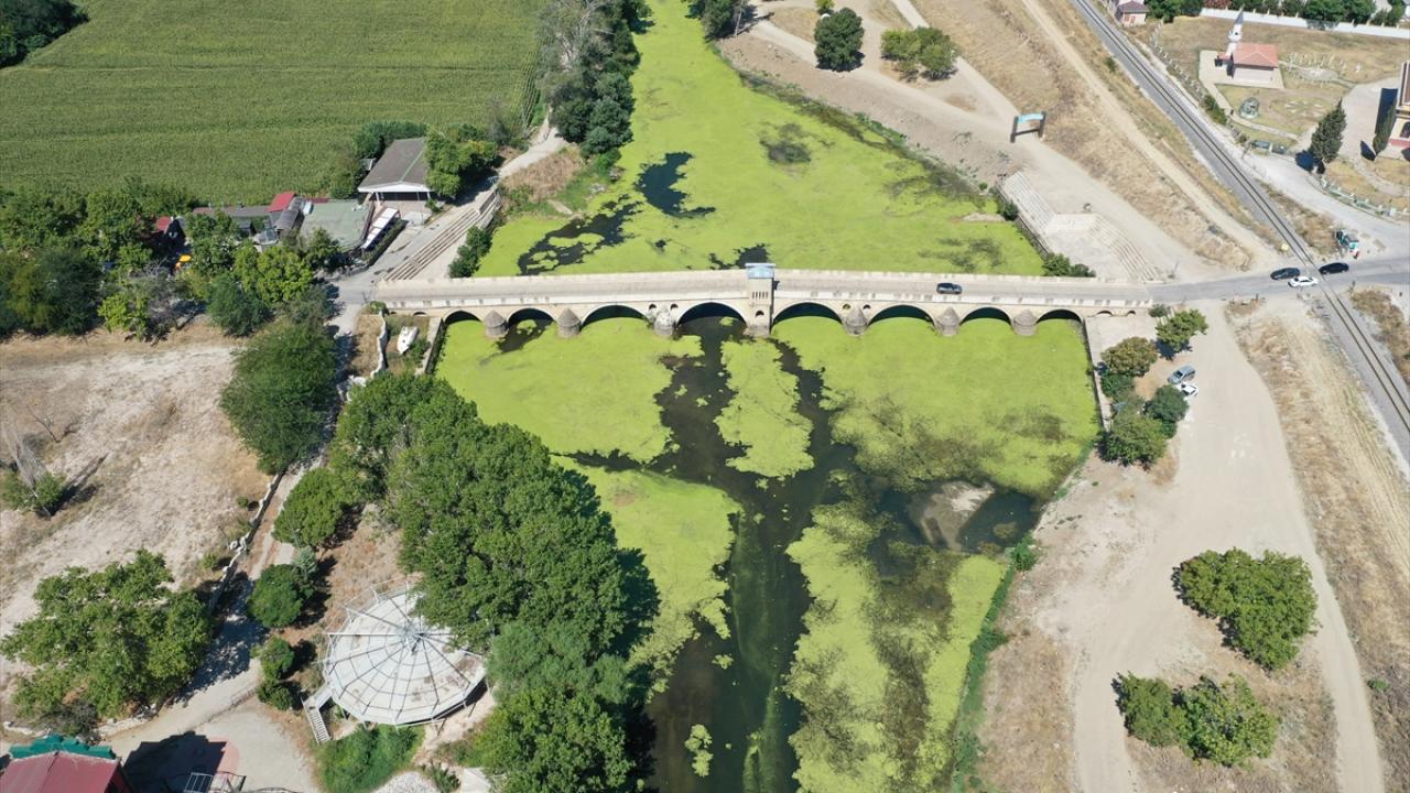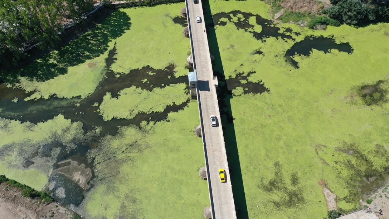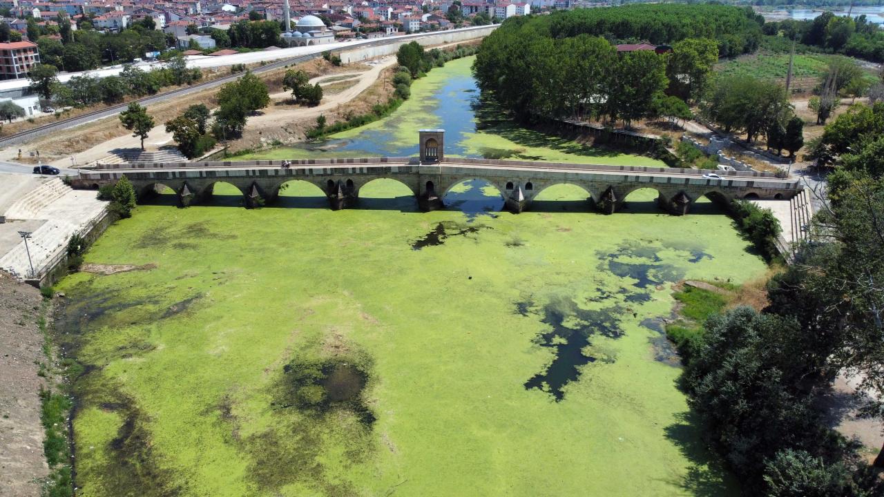 Tunca Köprüsü ile Kanuni Köprüsü çevresinde nehir yüzeyinin tamamı neredeyse yosun ve su mercimekleri ile kaplandı.
