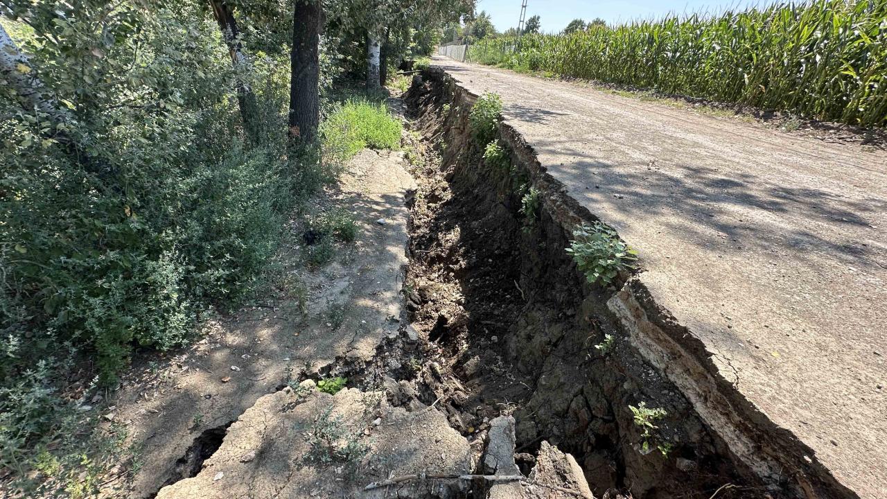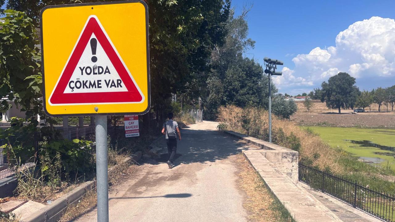 Tunca Nehri kenarındaki yolda çökme oluştu