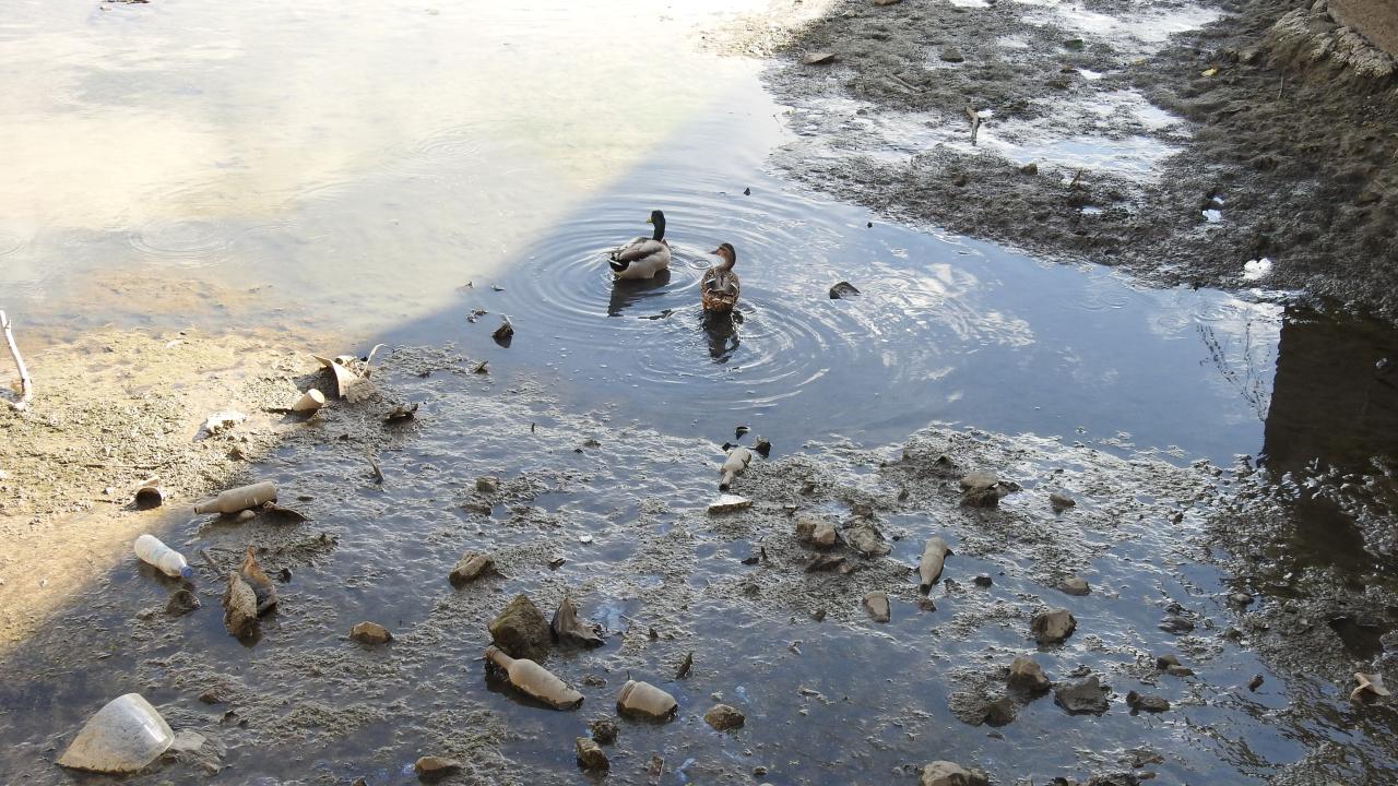 Edirne'nin önemli su kaynaklarından birisi olan Tunca Nehri dip seviyeyi gördü. Kuraklığın da etkisiyle bataklığa dönen nehrin yüzeyi çöplerle kaplandı.