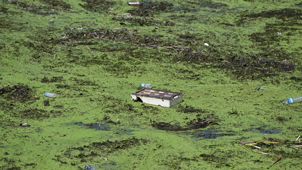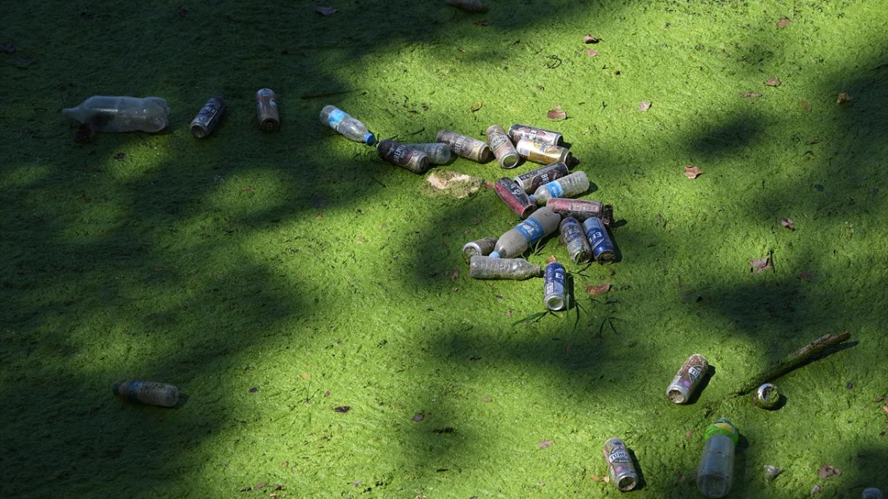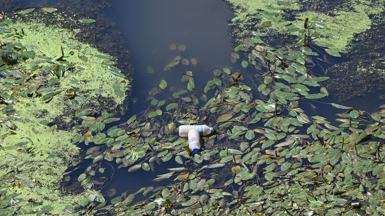 Edirne'de yaşanan kuraklık ve tarımsal sulamaya bağlı olarak su seviyesi düşen Tunca Nehri'nin yatağında oluşan ot öbekleri ve biriken çöpler temizleniyor.