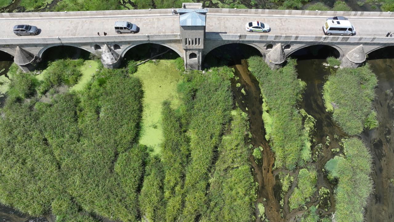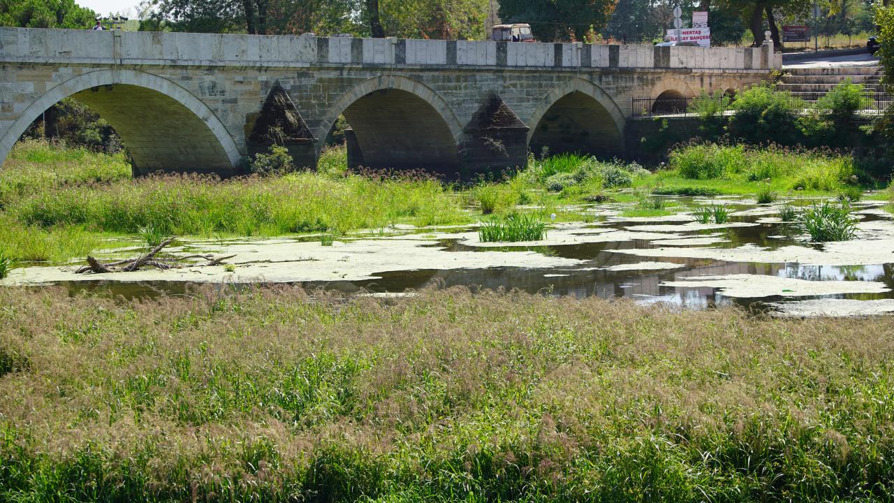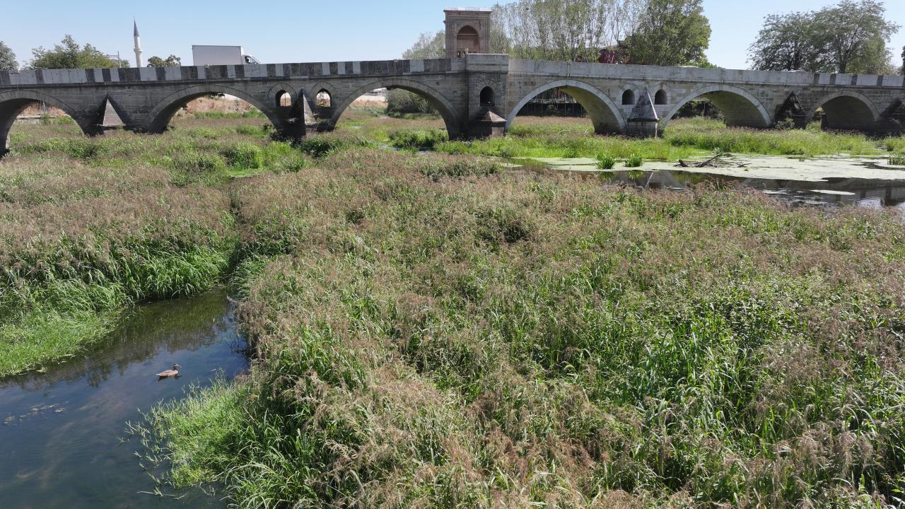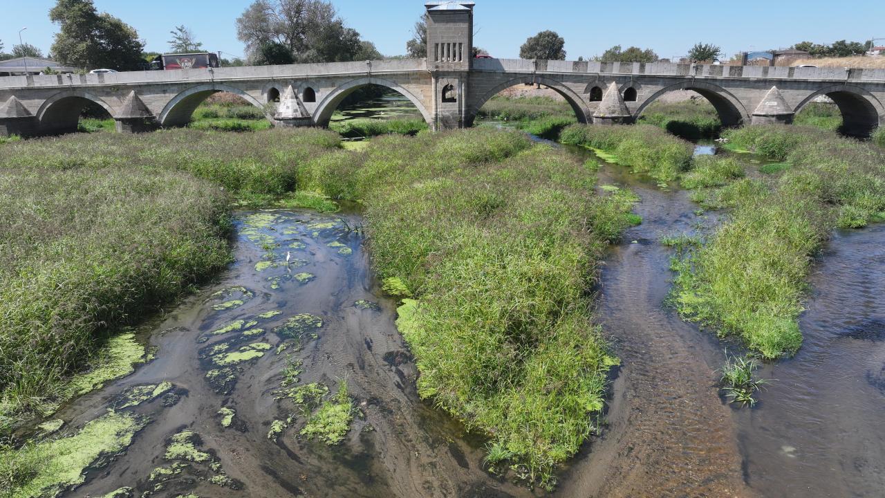 Tunca Köprüsü civarında su akışı büyük ölçüde durdu, nehir yatağı geniş ot öbekleri, sazlıklar ve yosunla kaplandı.