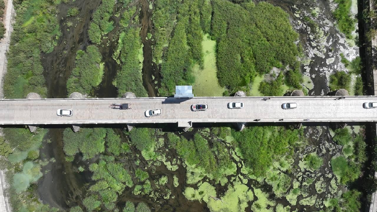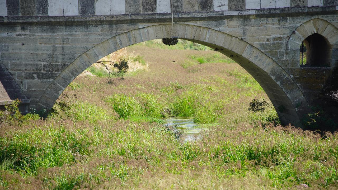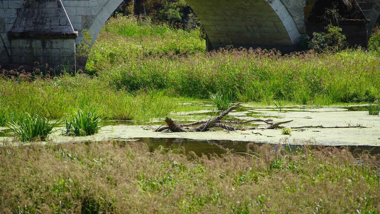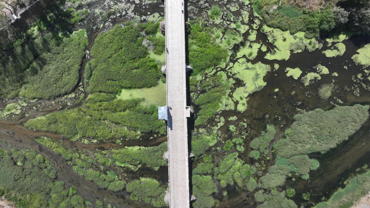 Tunca Köprüsü civarında su akışı büyük ölçüde durdu, nehir yatağı geniş ot öbekleri, sazlıklar ve yosunla kaplandı.