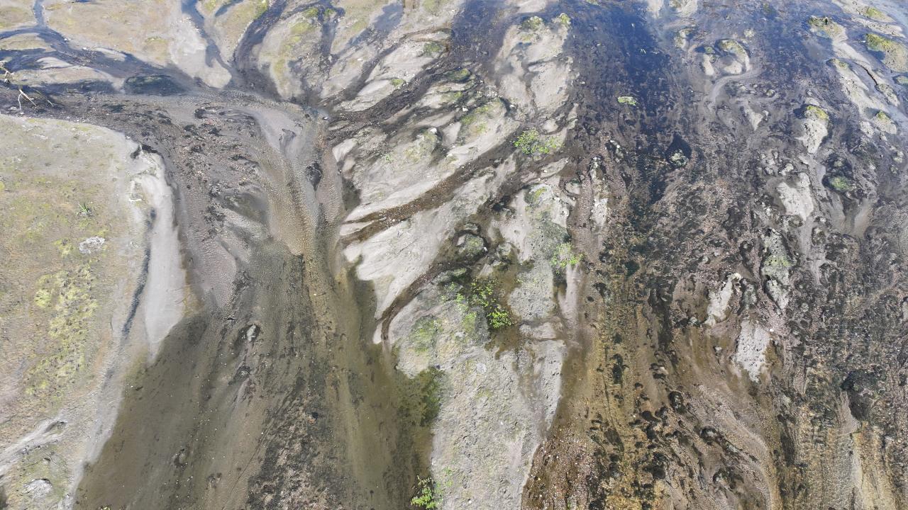 Akışın azaldığı bölümlerde nehir yatağı bitki ve yosunla kaplandı. Su seviyesinin düşmesiyle nehre atılan çöpler gün yüzüne çıktı.