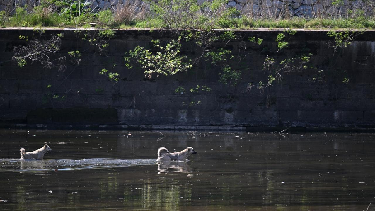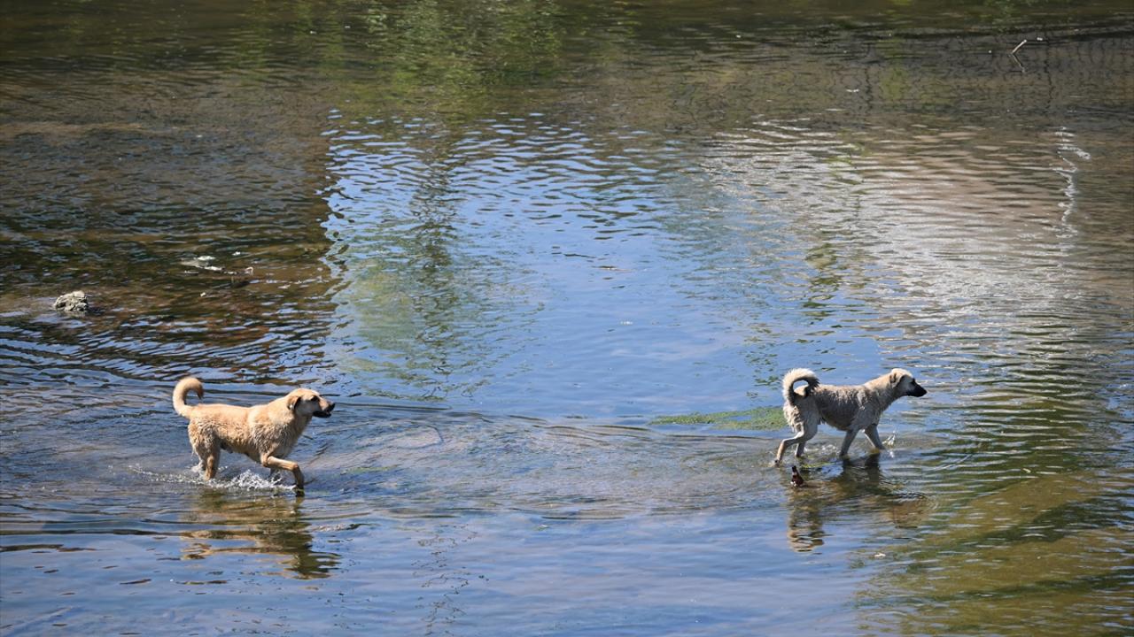 Sahipsiz köpekler de nehrin içerisinden yürüyerek karşıya geçti.
