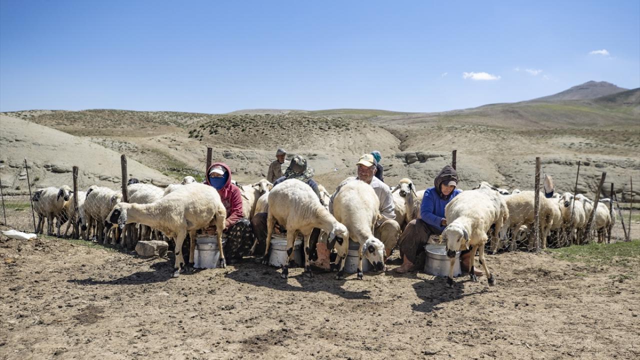 Sonbahar aylarına kadar yaylalarda konaklayan göçerler binlerce koyunun günde iki kez sağılması için de zorlu mesai harcıyor.