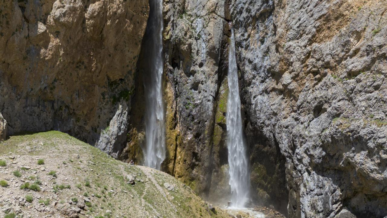 Yüksek rakımdaki karların erimesiyle mevsimlik akan şelaleler, Kurban Bayramı tatilini fırsat bilen gezi gruplarının uğrak yeri oluyor.