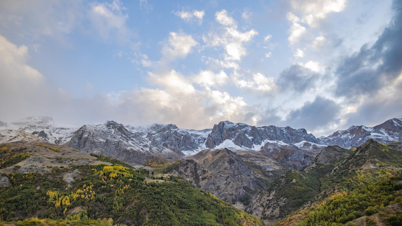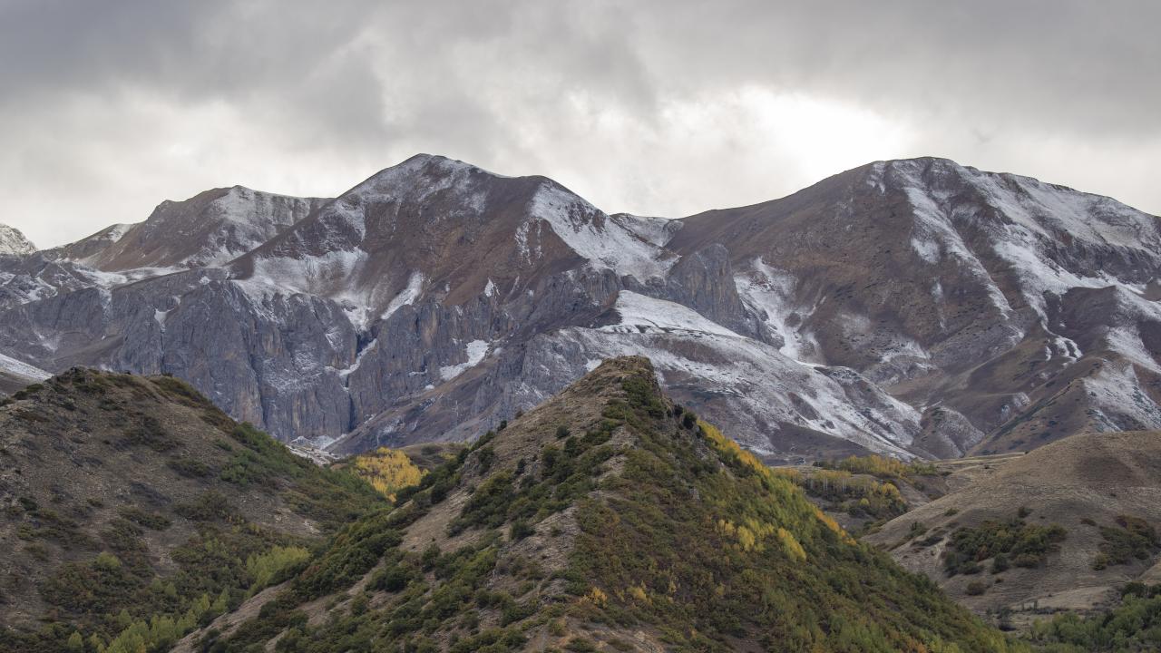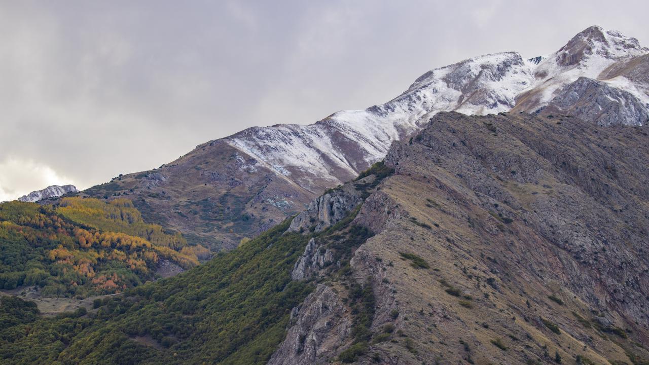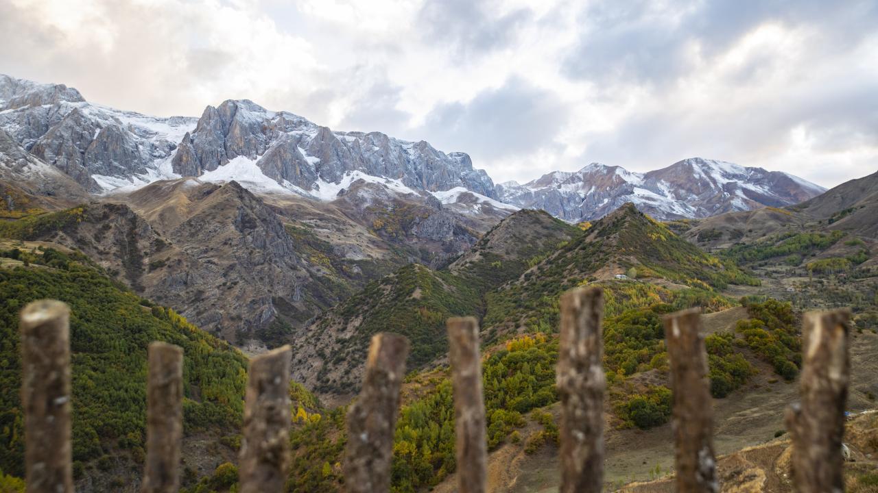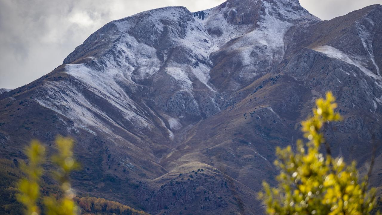 Sonbahar renkleriyle bütünleşen karlı dağlar, güzelliklerine güzellik kattı.