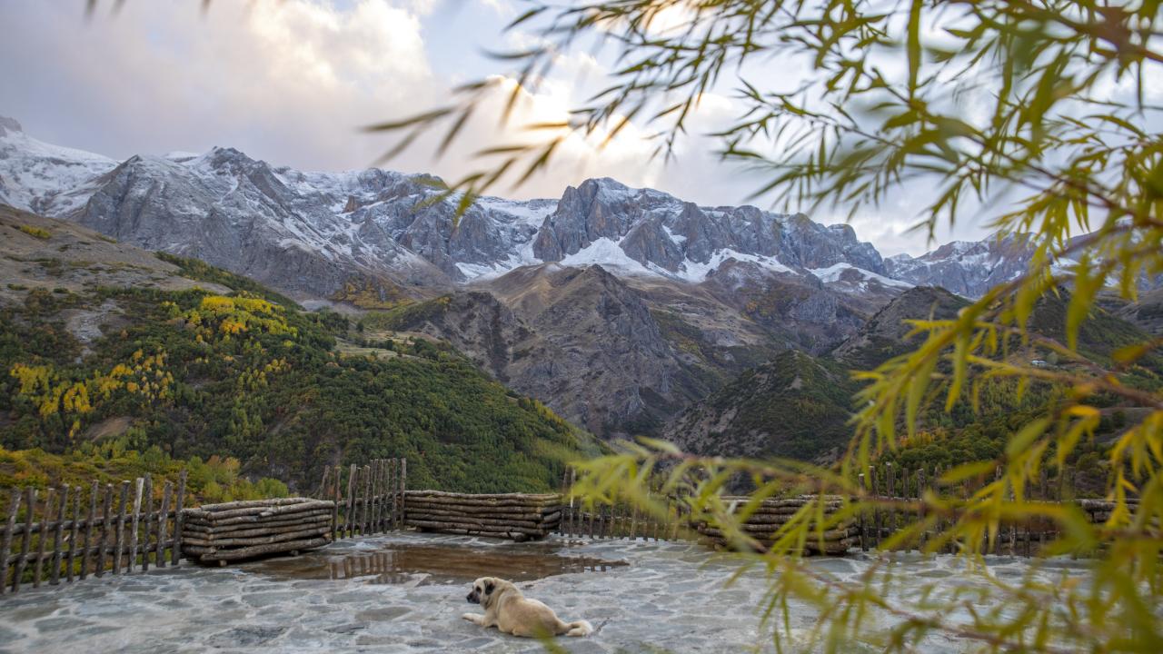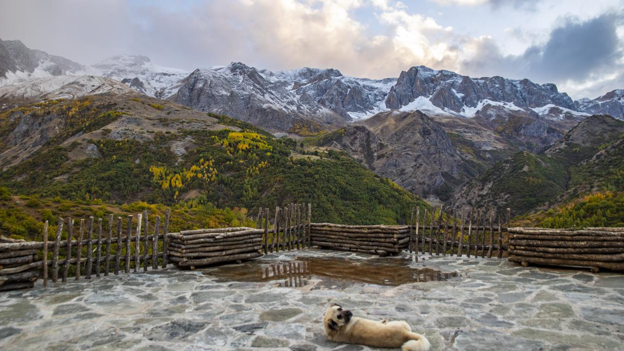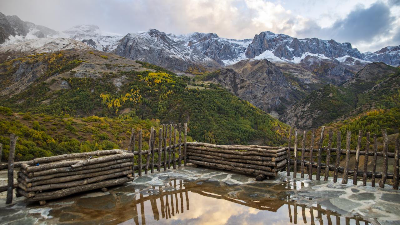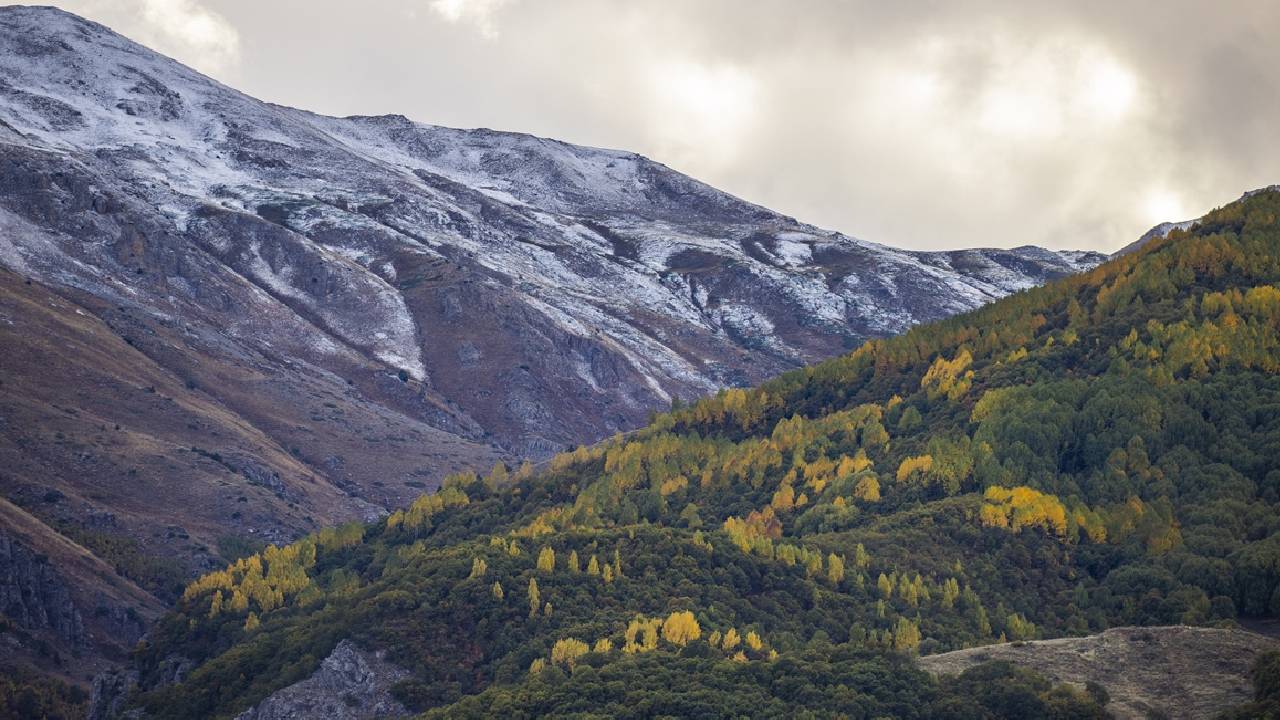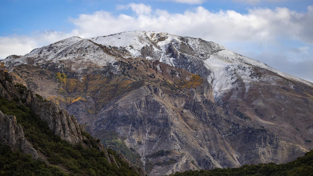 Sonbahar renkleriyle bütünleşen karlı dağlar, güzelliklerine güzellik kattı.