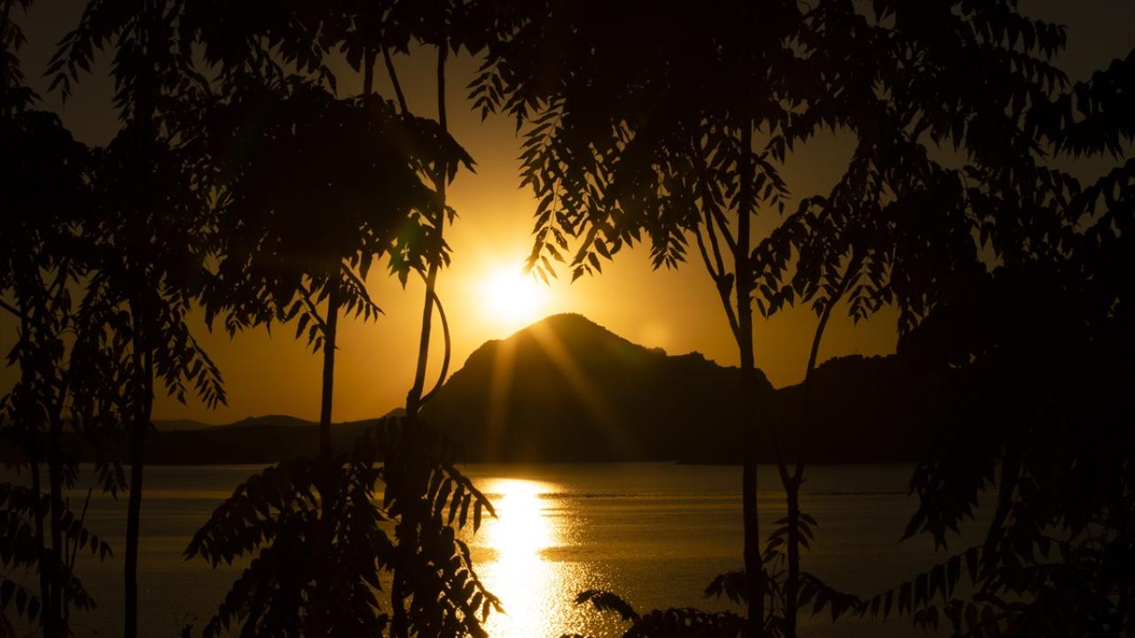 Tunceli'nin Pertek ilçesinde gün batımı esnasında gökyüzünde oluşan kızıllık güzel görüntü oluşturdu.