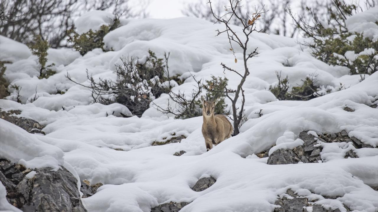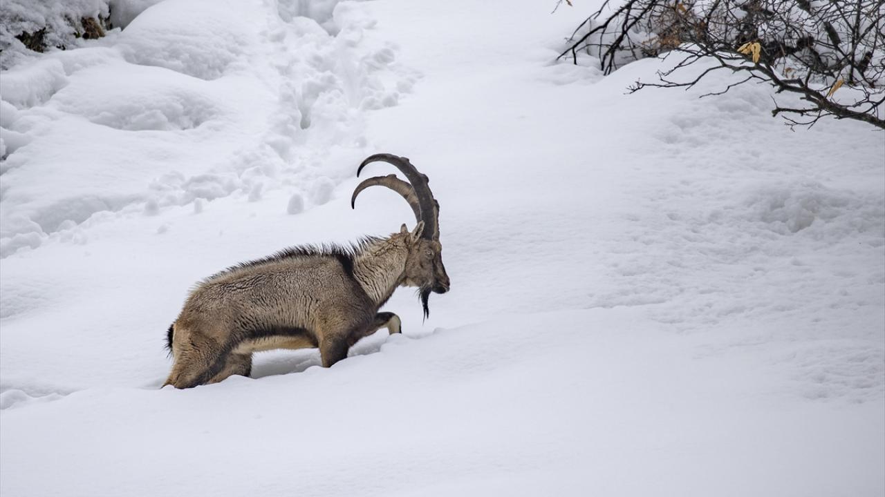 Kar kalınlığının yer yer 2 metreyi aştığı milli parkta, şu sıralar yaban keçileri, domuzlar ve akbabalar besin bulmakta zorlanıyor.