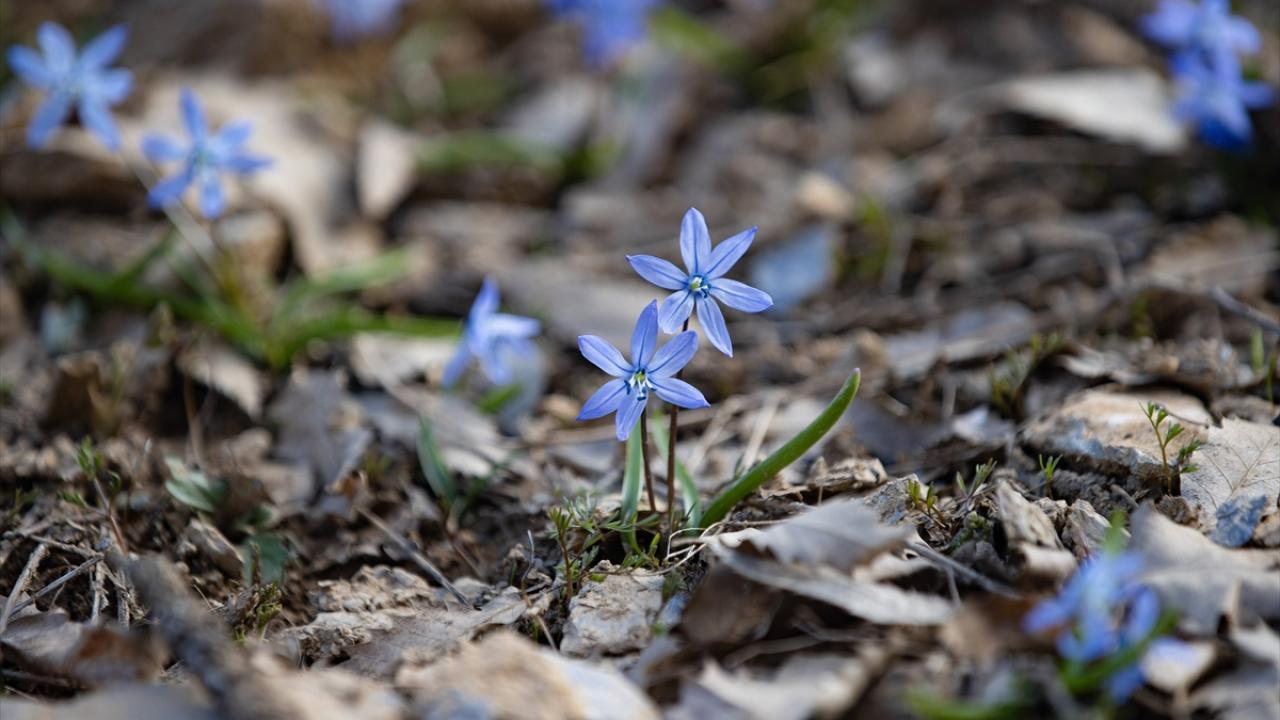 İksor Vadisi`nde de karların erimesiyle ormanlık alanlarda bilimsel adı "Scilla siberica" olan mavi kardelenler açtı.