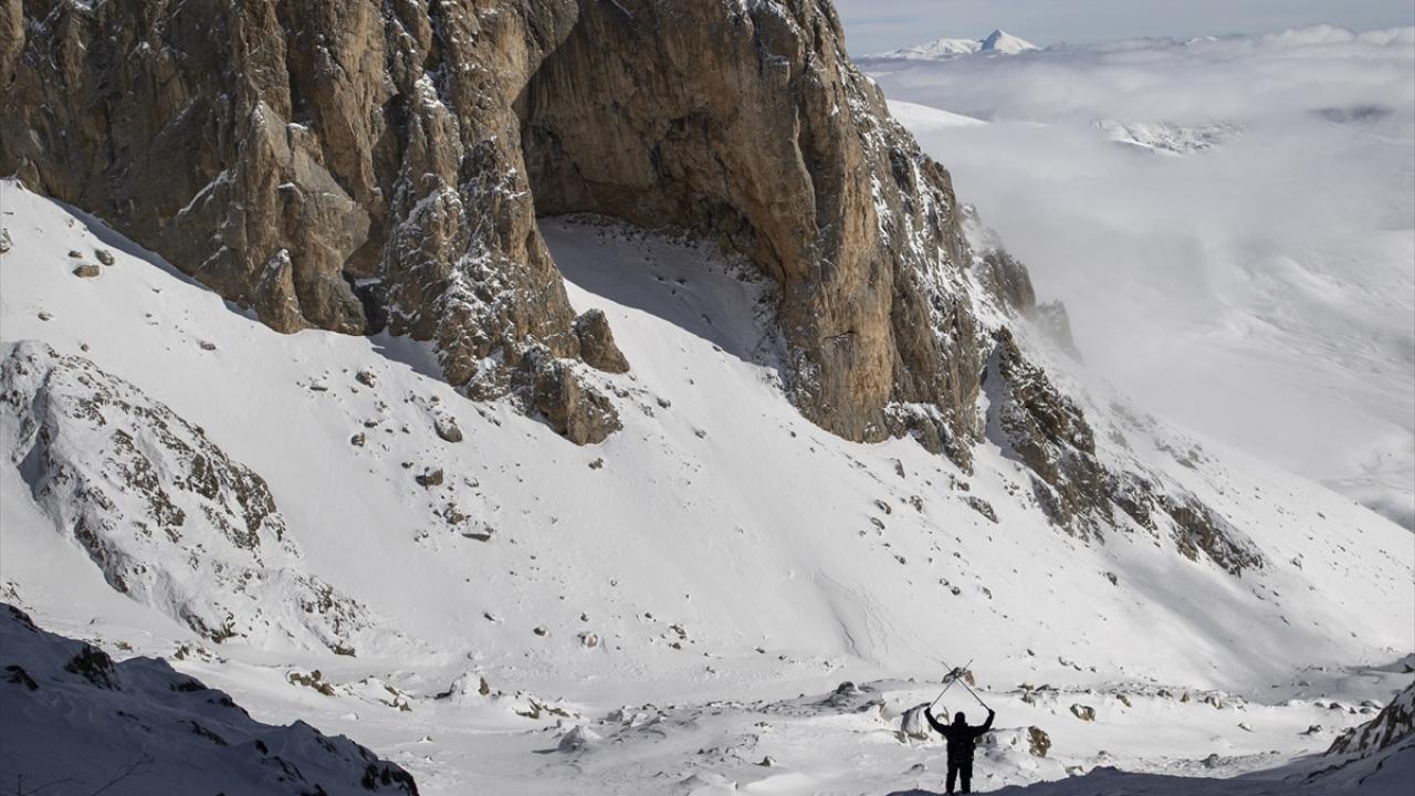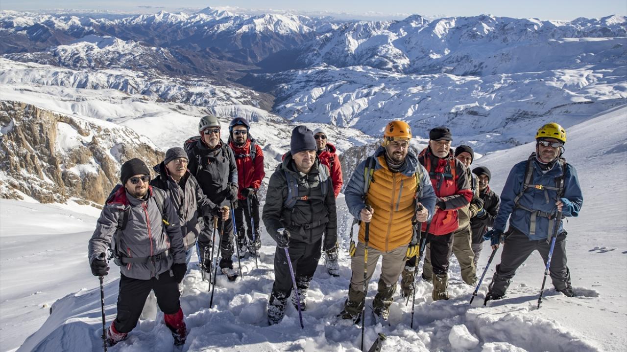 Yaklaşık 15 kilometre yol kat eden dağcılar, hedefledikleri 3 bin 142 metre yüksekliğe çıkıp manzara fotoğrafları çekti.