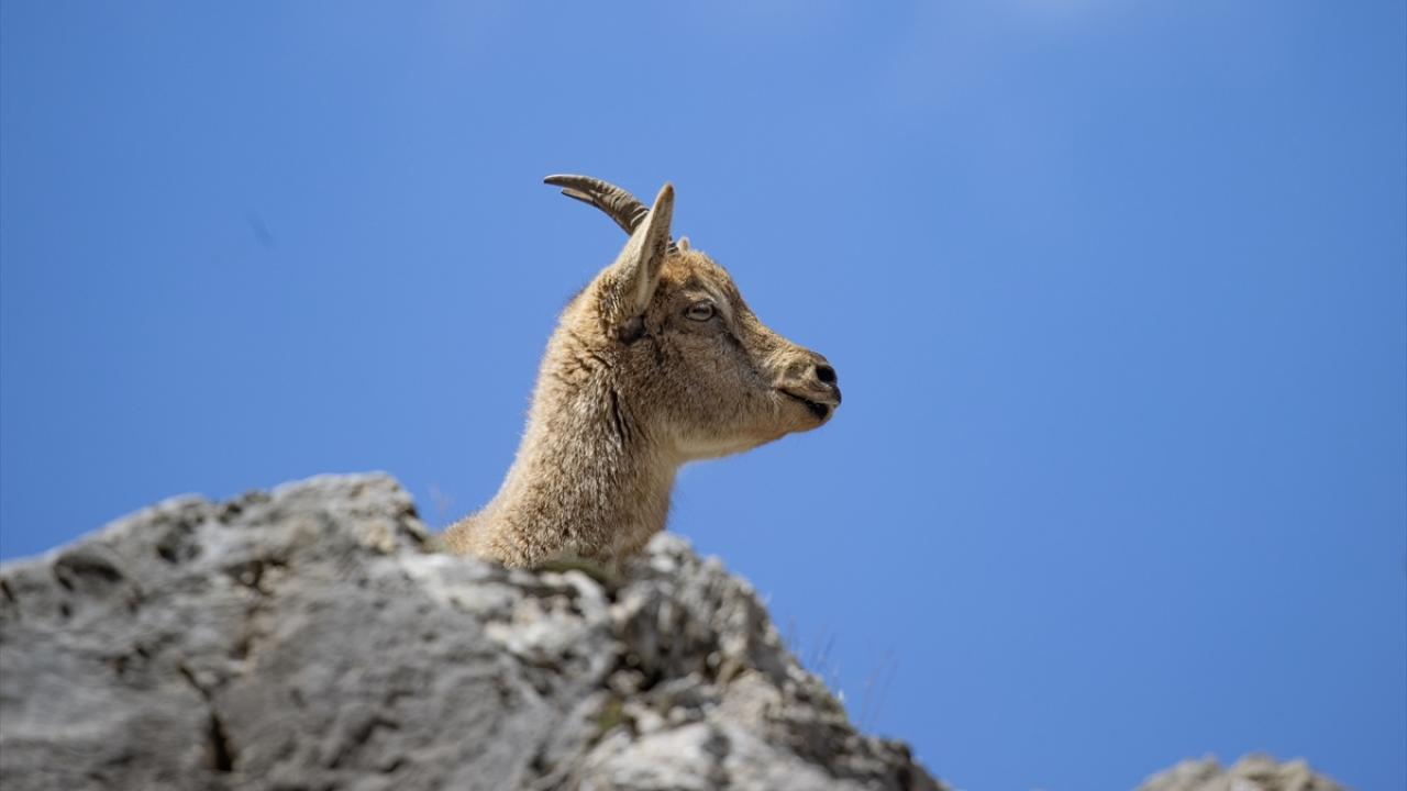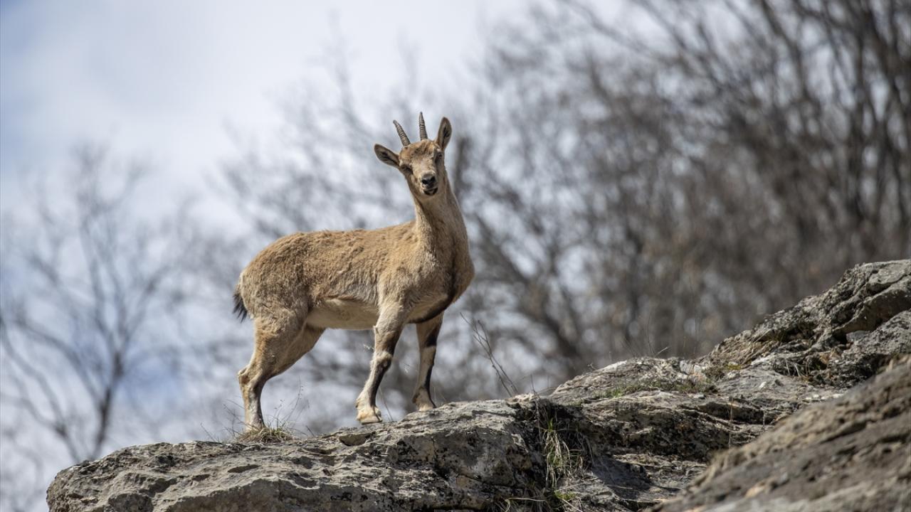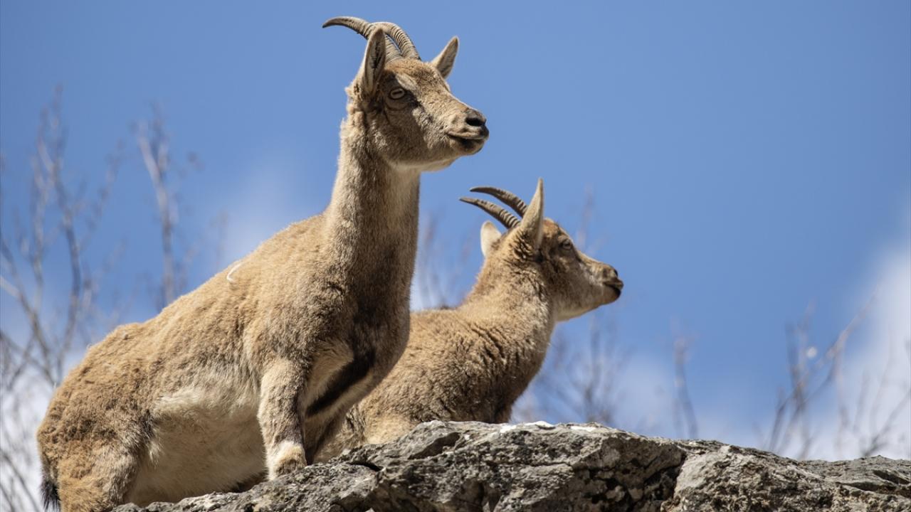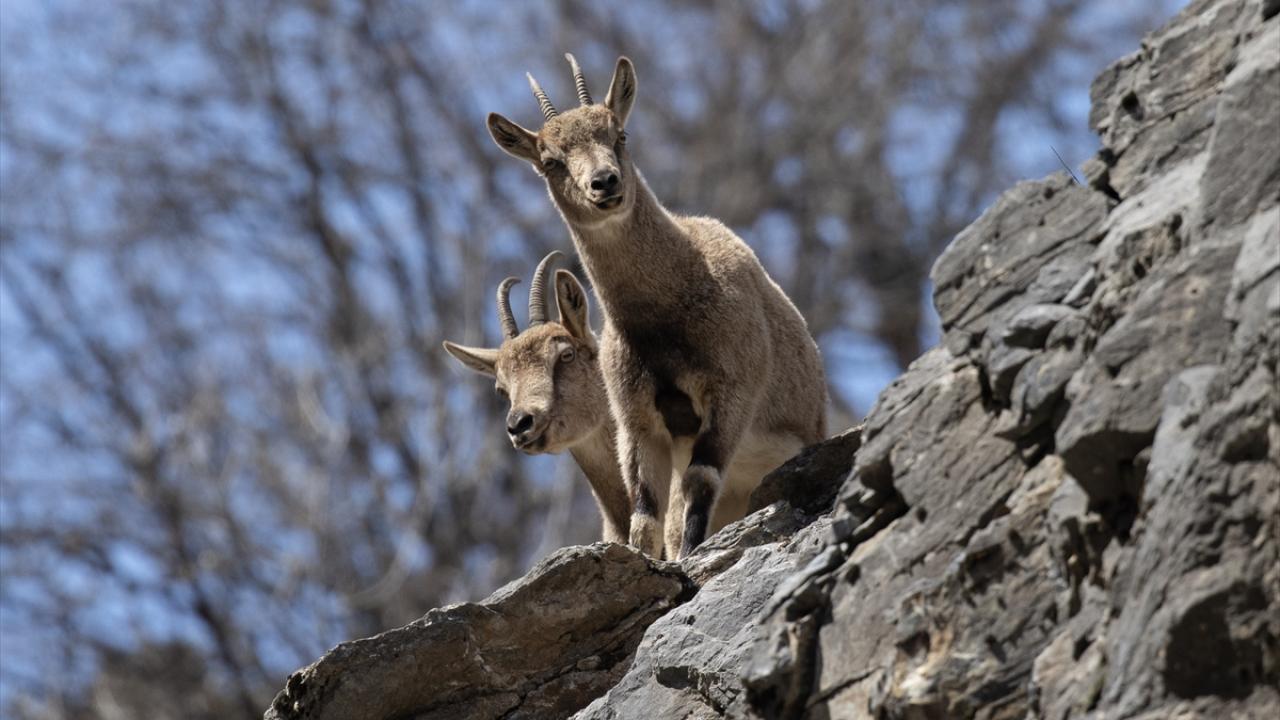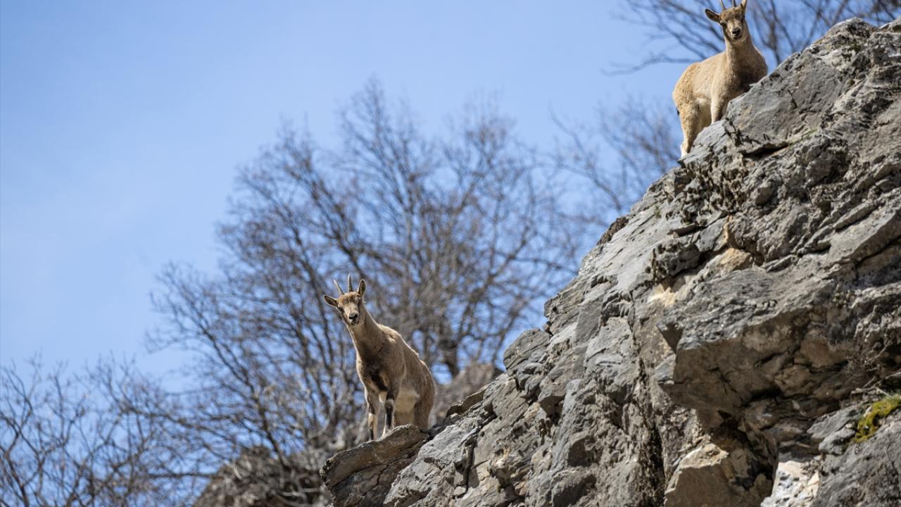 Milli parkın Venk Köprüsü mevkisinde yaban keçileri ve tilkiler dağlık alanda yiyecek ararken görüntülendi.
