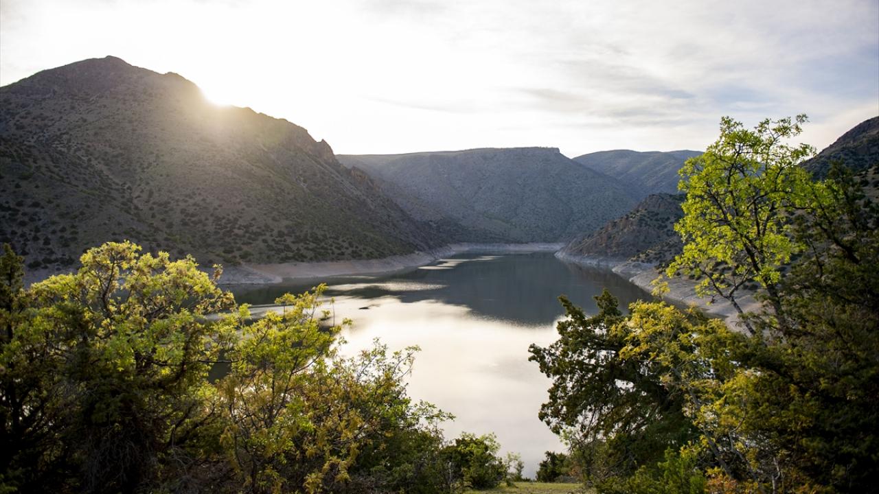 Keban Baraj Gölü sularının çekilmesiyle tarihi Miyadin Kilisesi ve eski yerleşim yerlerinin de tekrar gün yüzüne çıktığı vadide, gün batımı esnasında dağların ve ormanlık alanların suya yansıması kartpostallık görüntüler oluşturuyor.