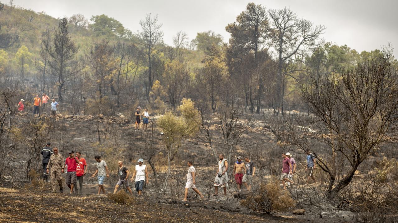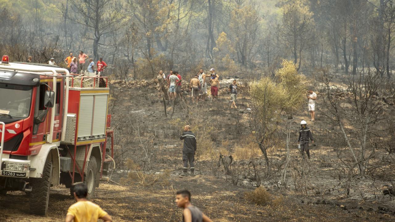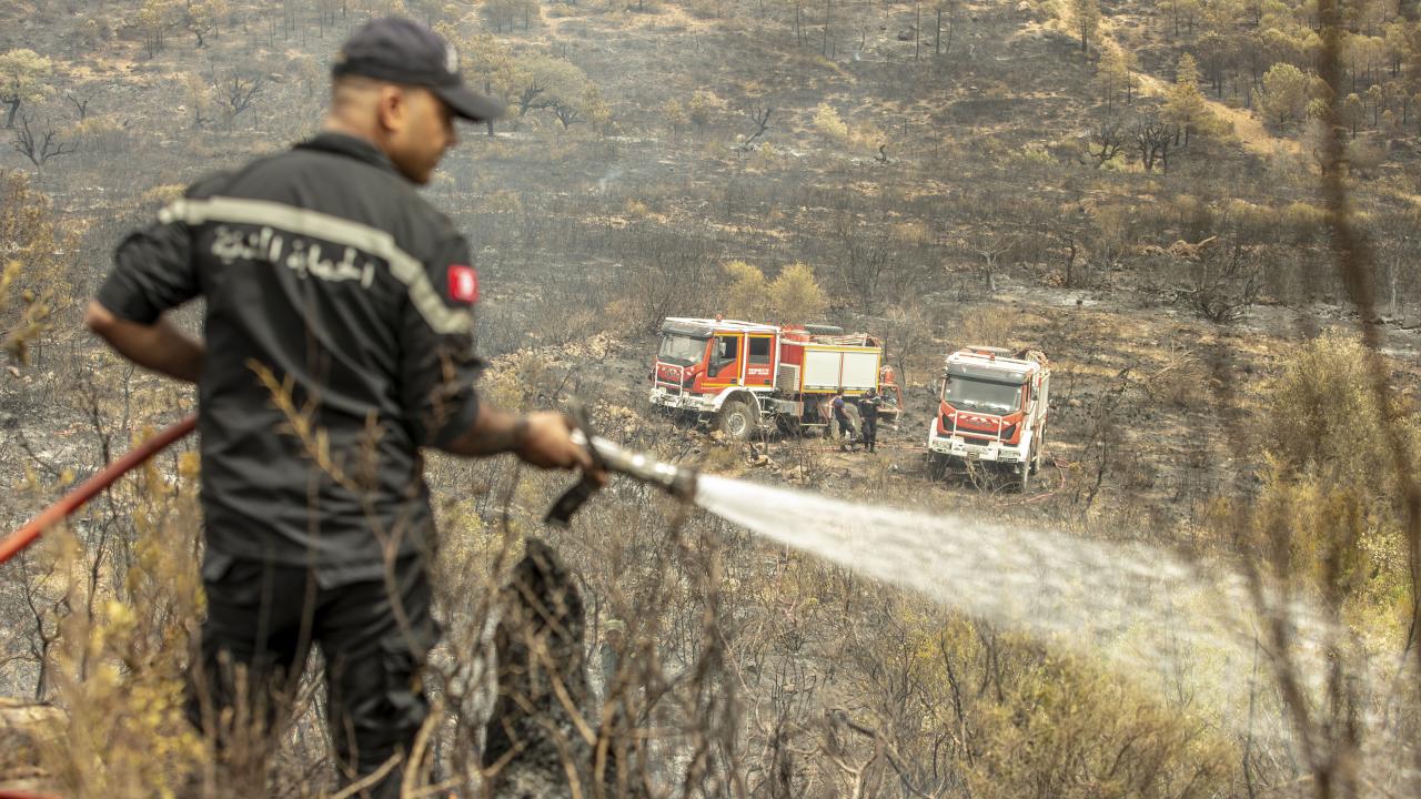 Tunus'un Cezayir sınırındaki Cendube vilayetinde orman yangınlarıyla mücadele sürüyor.