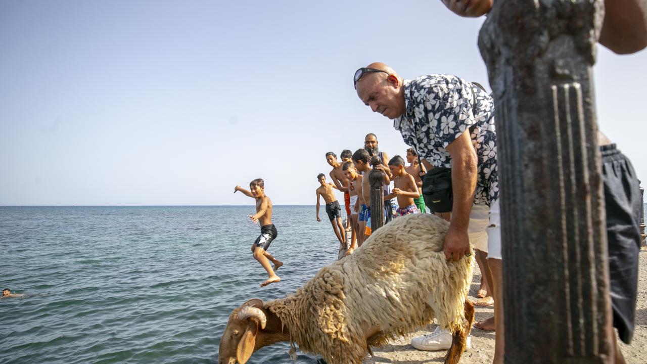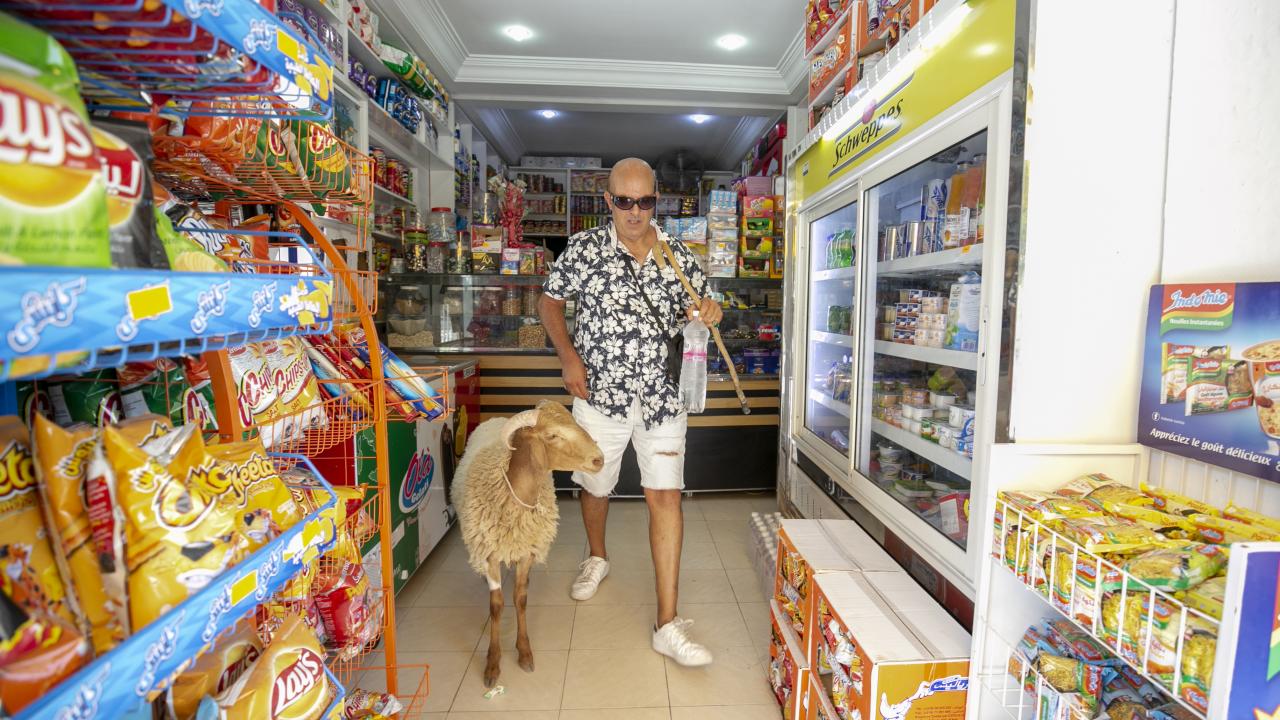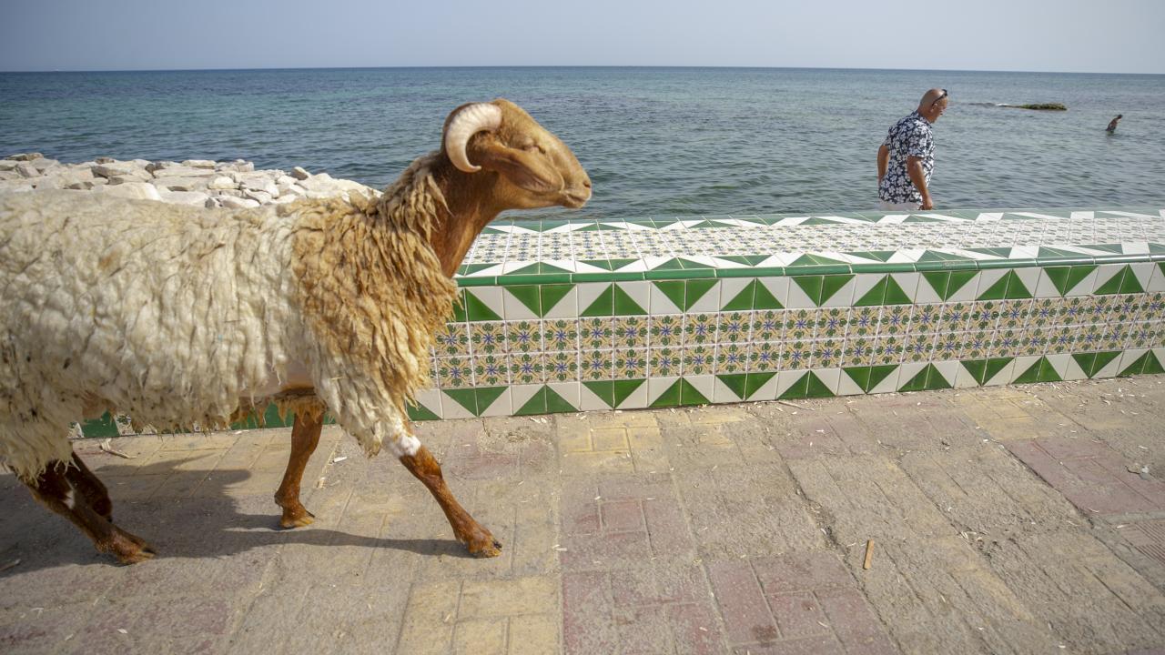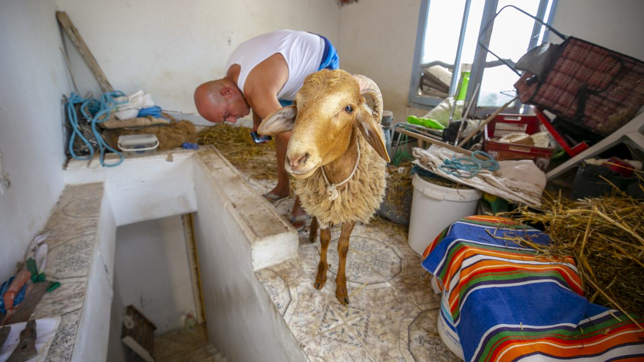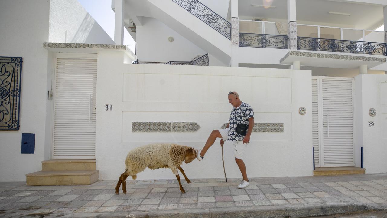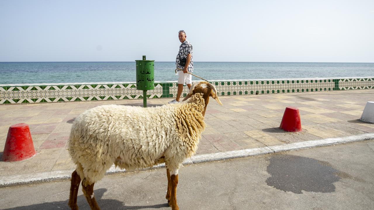 Tunus'un Nabil kentinde yaşayan Fevzi Kasım, Kurban Bayramı'nda kesilmek üzere aldığı kurbanlık koyun ile arkadaşlık kurdu.