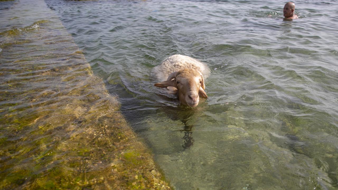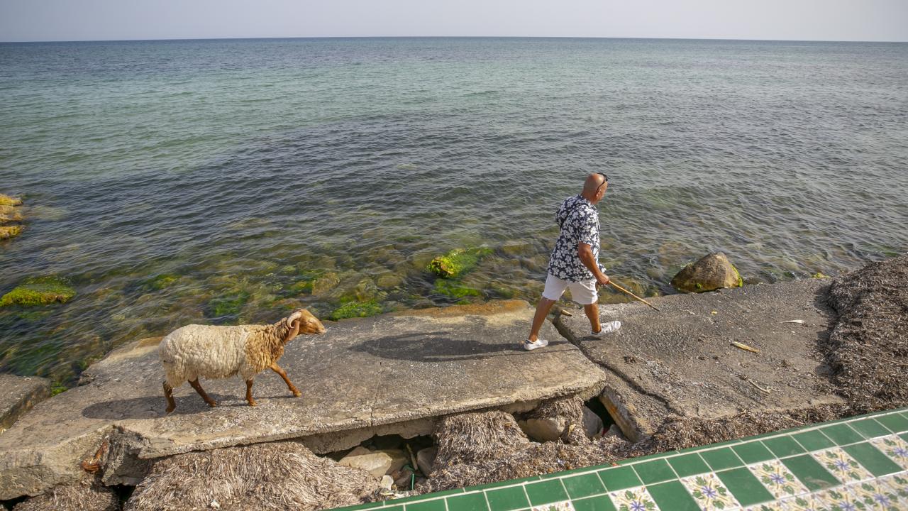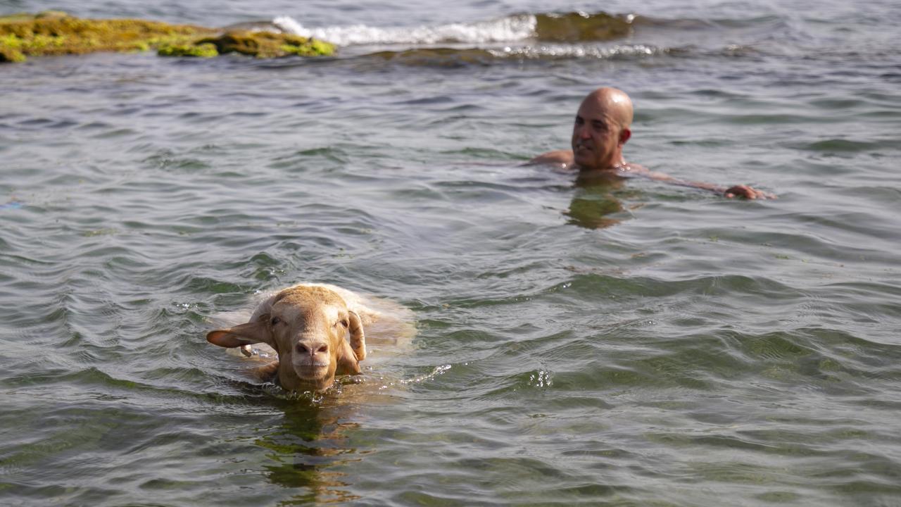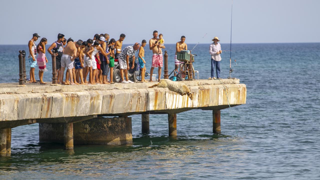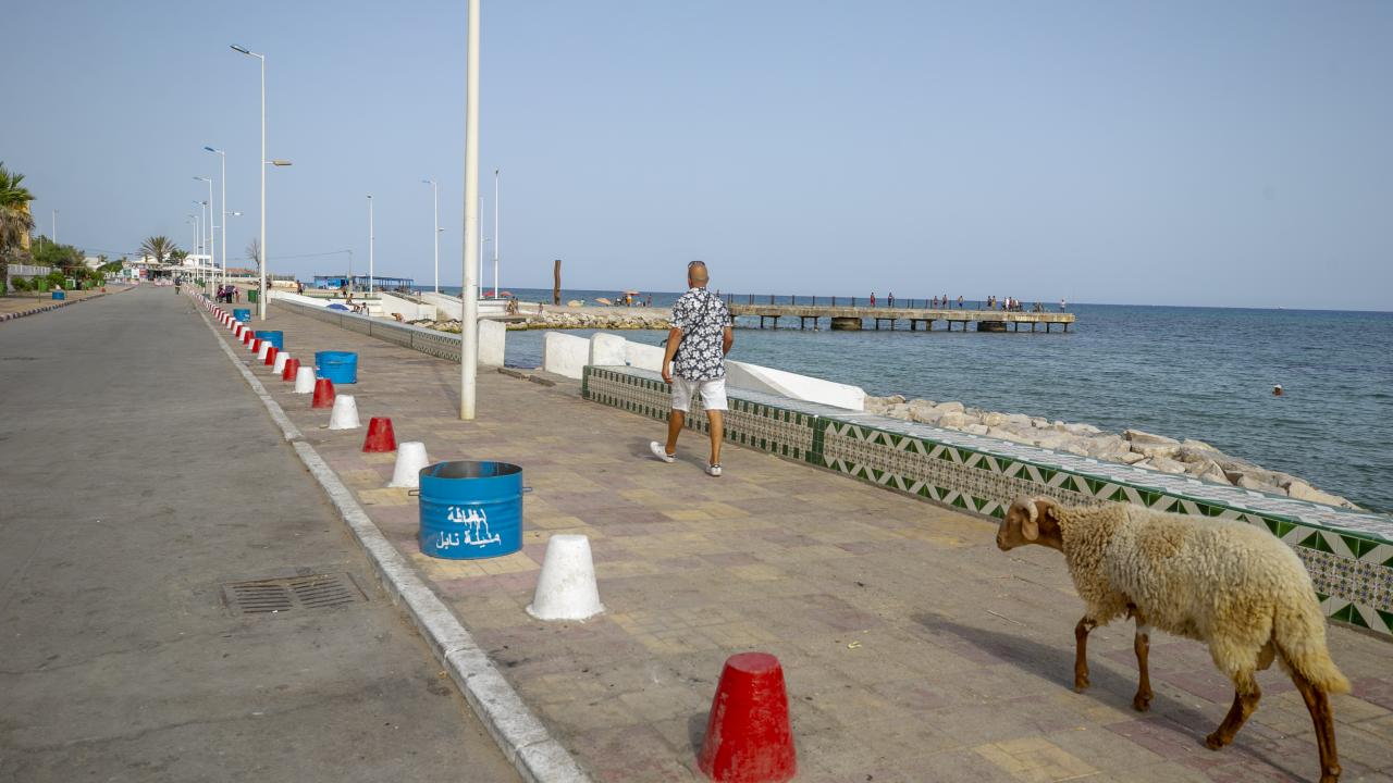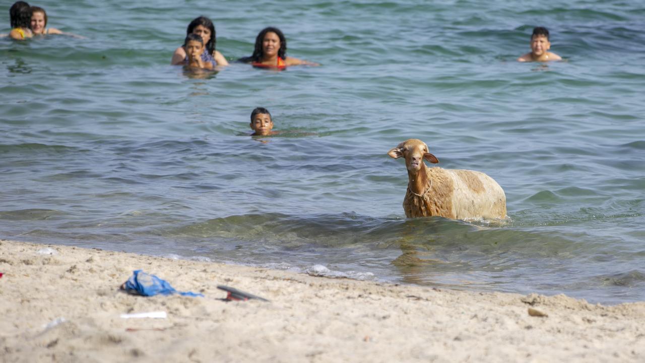Tunus'un Nabil kentinde yaşayan Fevzi Kasım, Kurban Bayramı'nda kesilmek üzere aldığı kurbanlık koyun ile arkadaşlık kurdu.