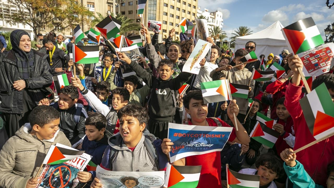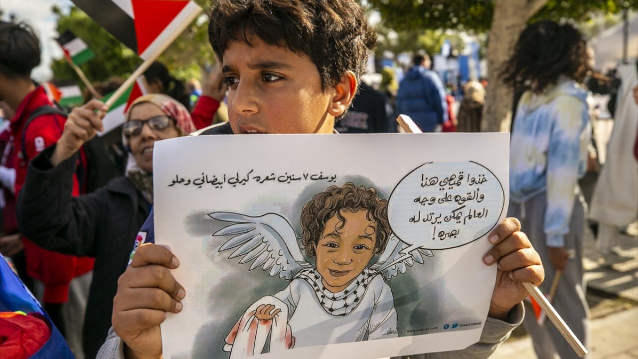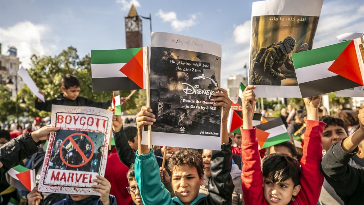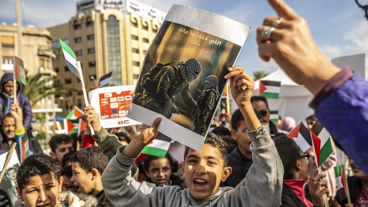 Tunus'un başkenti Tunus'taki Habib Burgiba Caddesi'nde toplanan çocuklar ve aileleri, Filistin'e destek gösterisi düzenledi. Göstericiler, ellerinde Filistin bayrakları ve Gazze saldırılarına tepki olarak İsrail ürünlerini boykota çağıran pankartlar taşıdı.