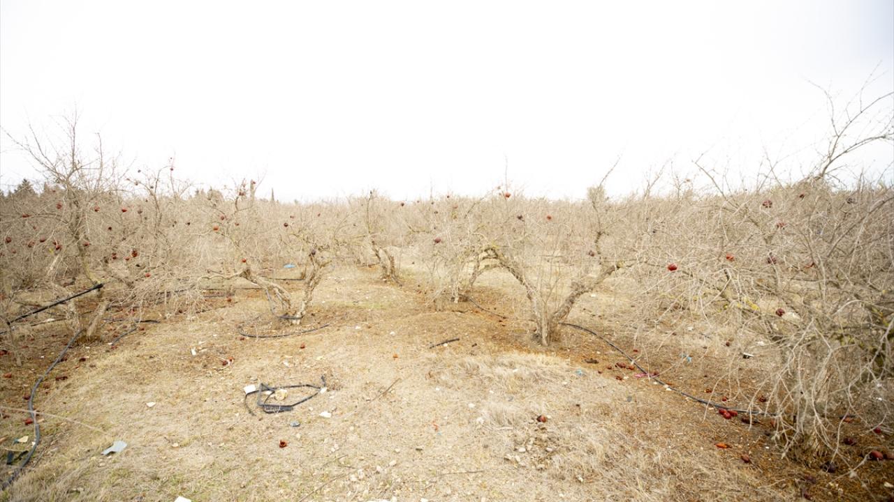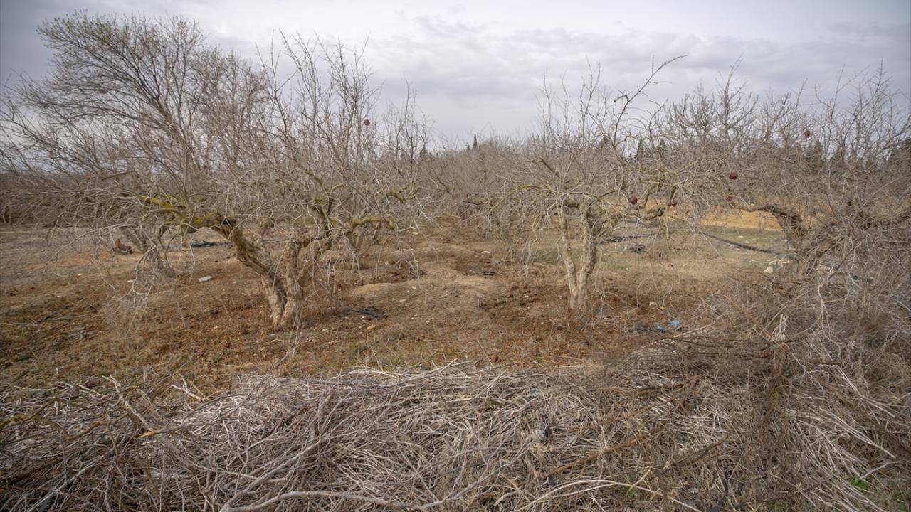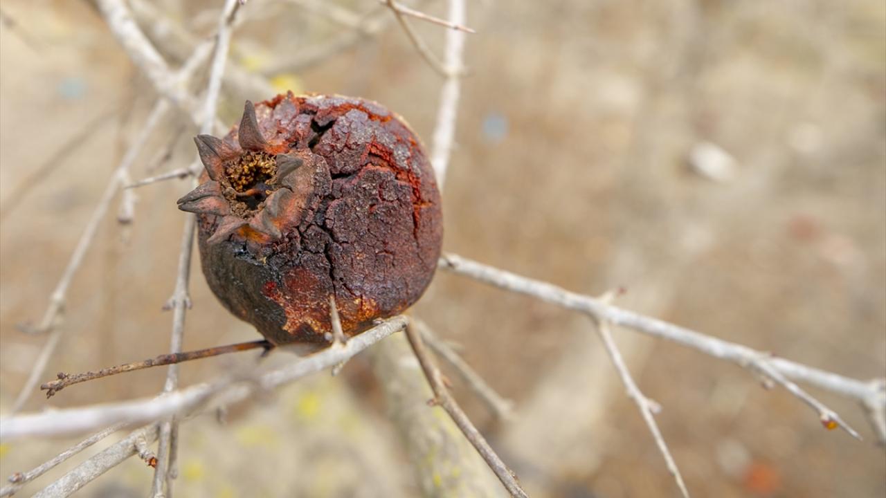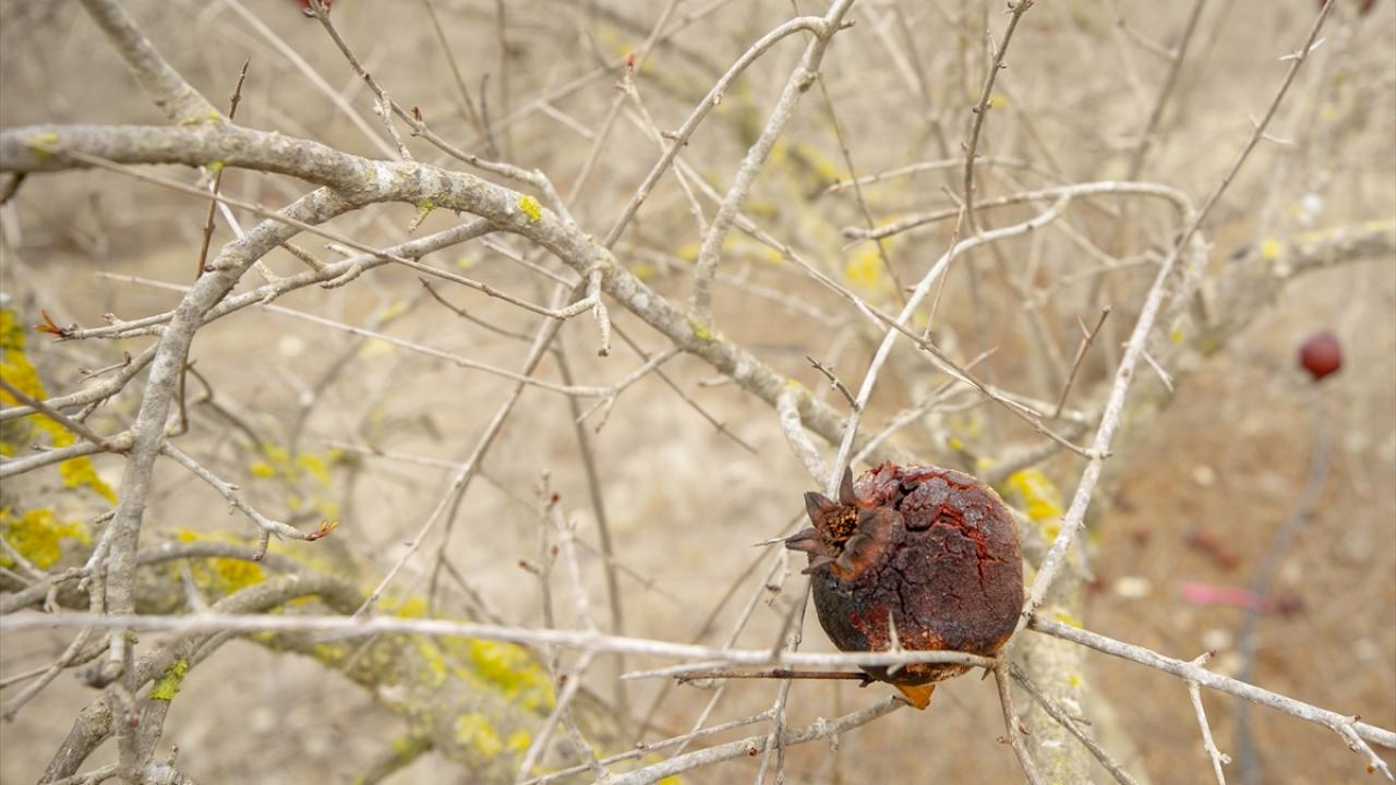 Etraftaki kurumuş nar ağaçlarını gösteren Debaş, normalde bu mevsimde nar ağaçlarının yeşerdiğini ancak bu sene ağaçların kuruyup kaldığını dile getirdi.