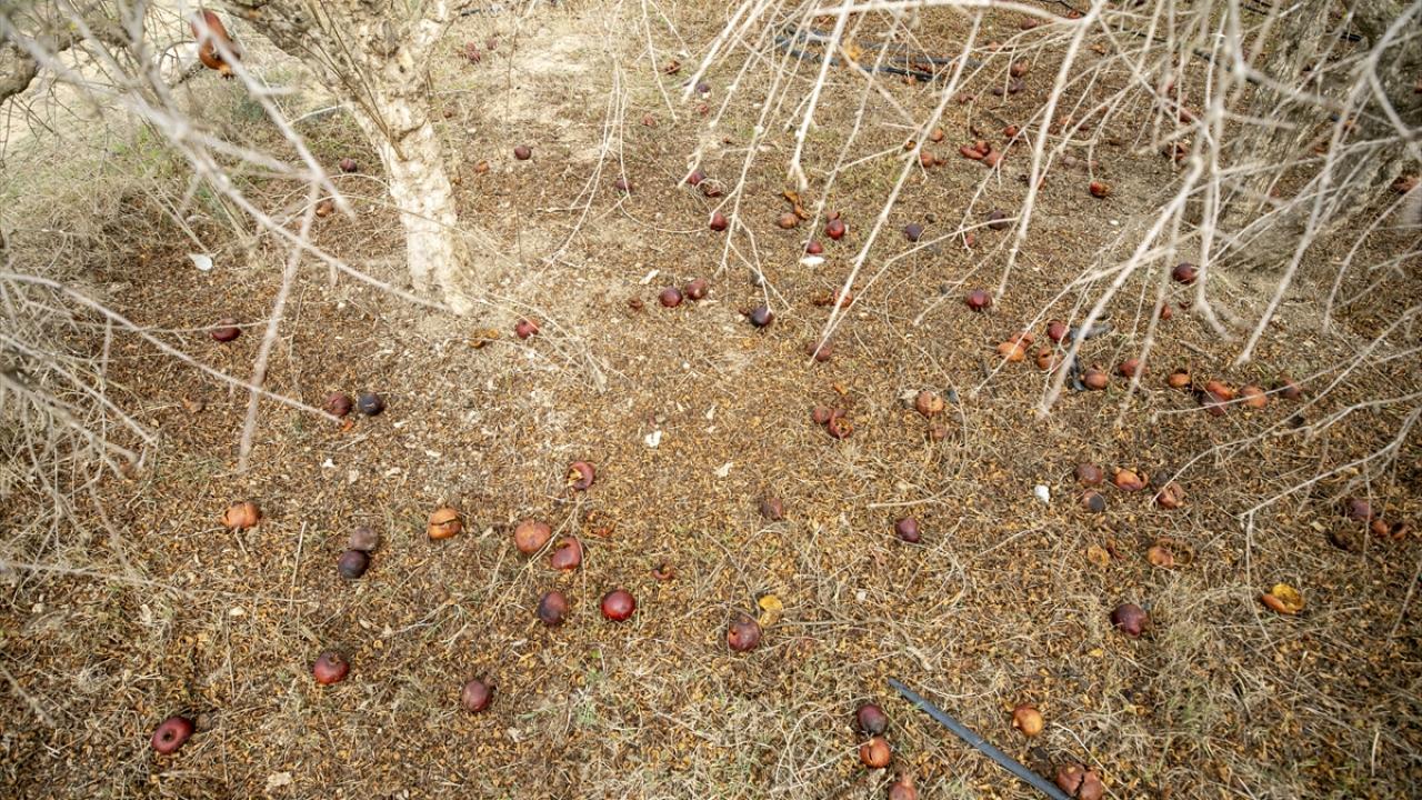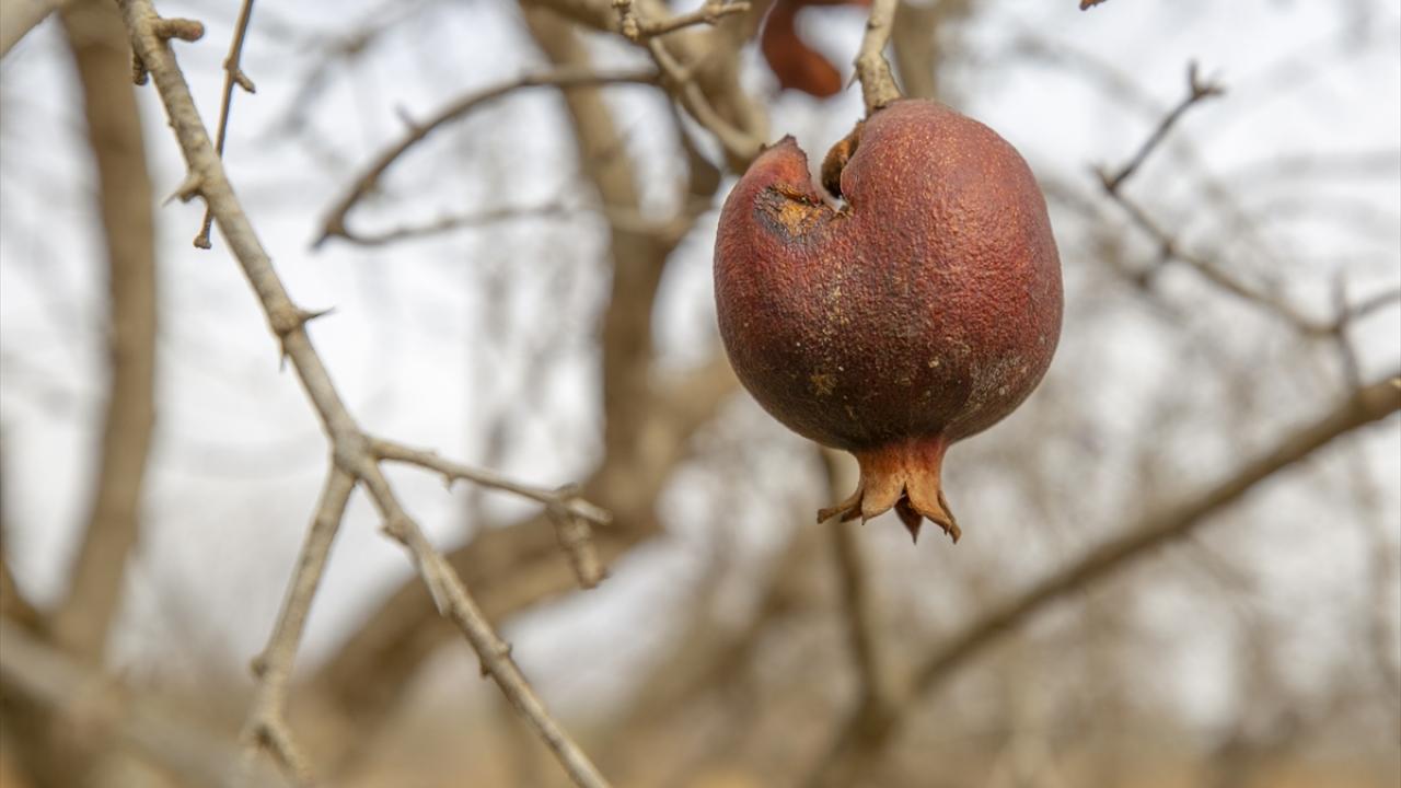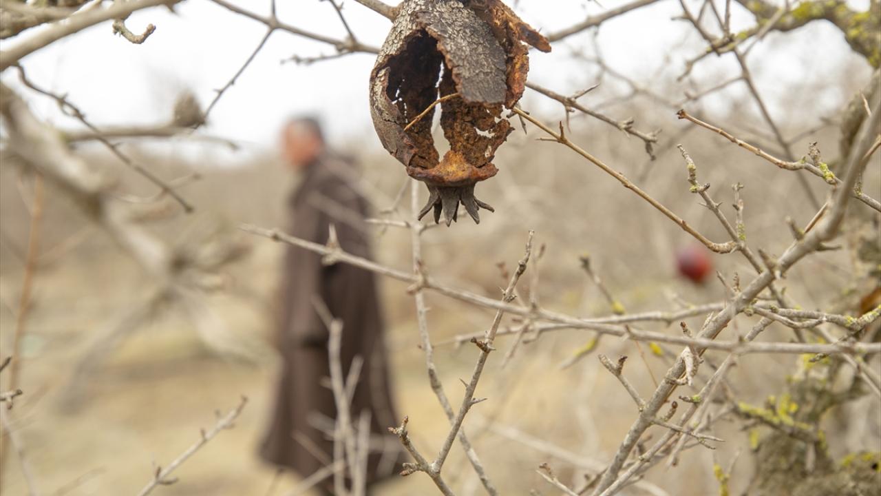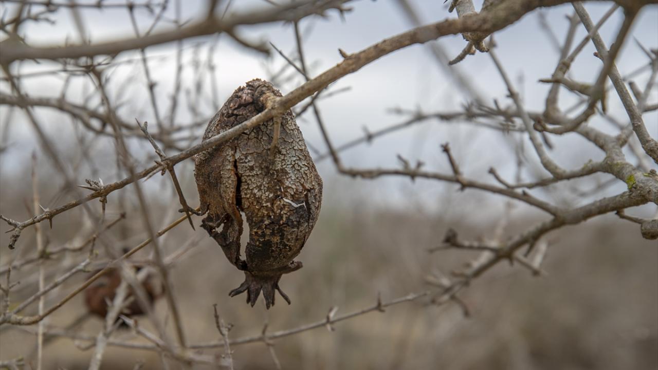 Etraftaki kurumuş nar ağaçlarını gösteren Debaş, normalde bu mevsimde nar ağaçlarının yeşerdiğini ancak bu sene ağaçların kuruyup kaldığını dile getirdi.