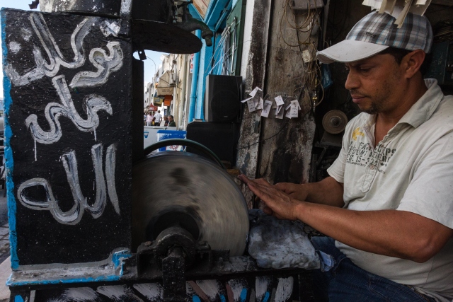 Kurban Bayramı'na sayılı günler kala, başkent Tunus'un Bab Souika bölgesindeki Bilahsın El-Ubeydi'nin dükkanında siparişleri yetiştirmek için hummalı bir çalışma yürütülüyor. Ubeydi ve çalışanları, bayrama doğru vatandaşlar tarafından en çok talep edilen bıçak bileme işlerinin yanı sıra mangal ve et kesme tahtaları da hazırlıyor.