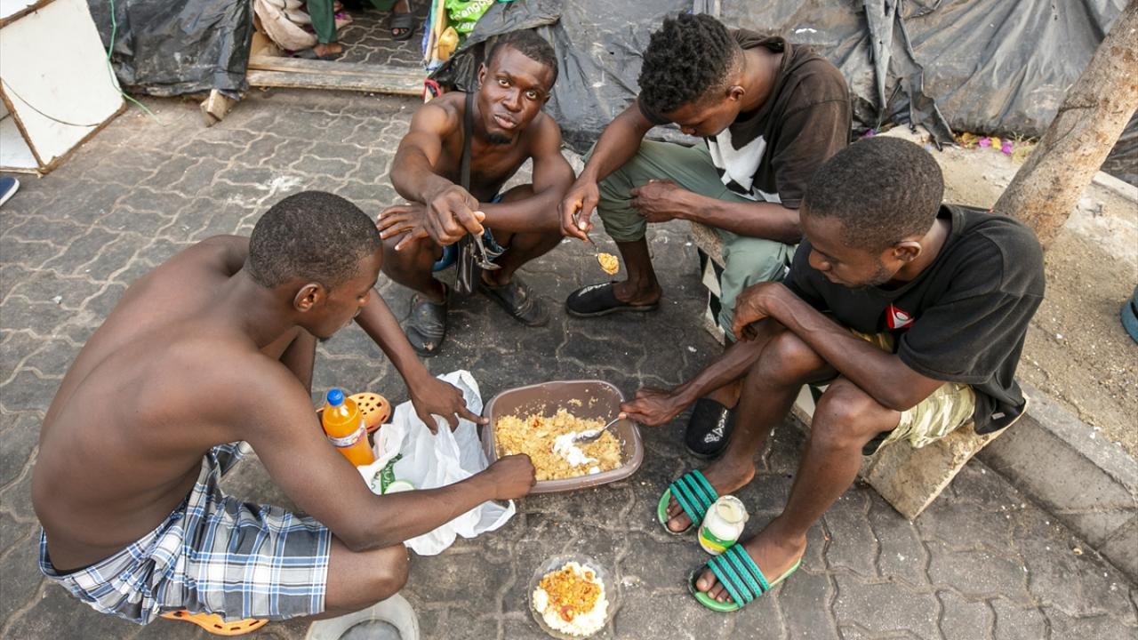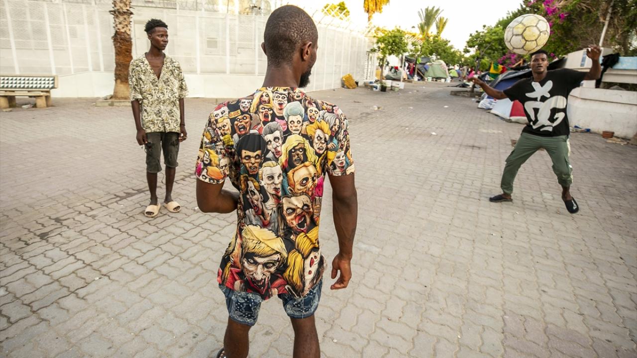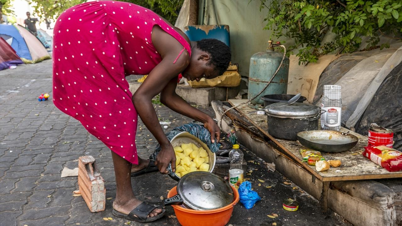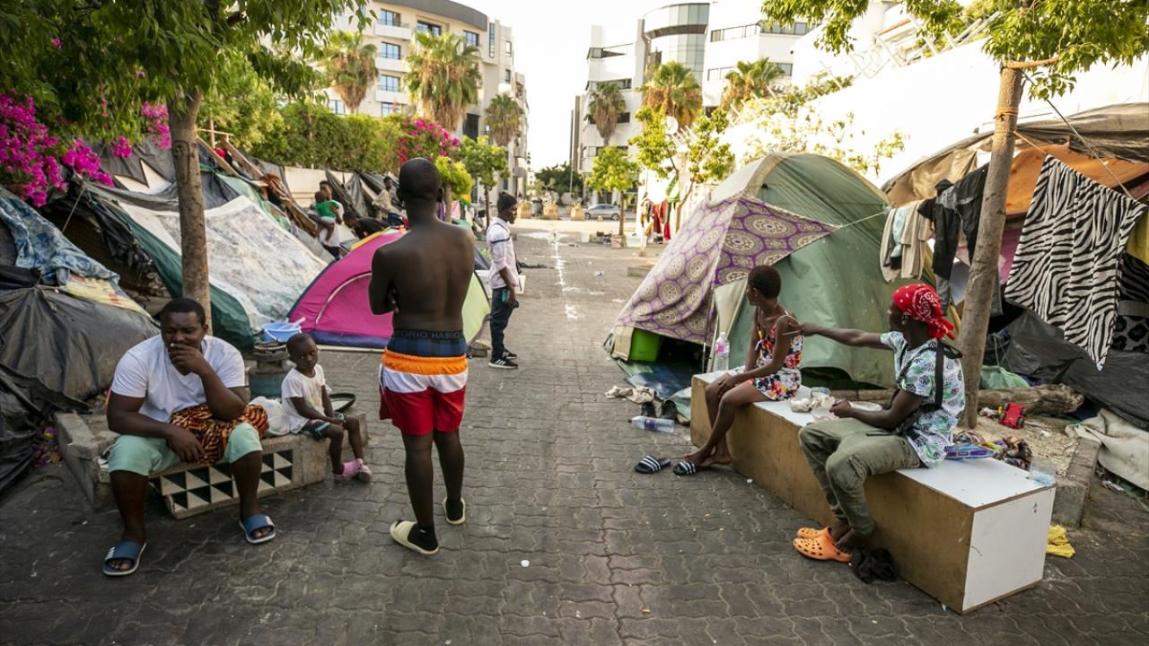 Başkent Tunus`taki Uluslararası Göç Örgütü (IOM) binasının 200 metre yakınındaki caddeyi mesken edinen onlarca Afrikalı göçmen, yaşamlarını kısıtlı imkanlarla sokakta sürdürüyor.