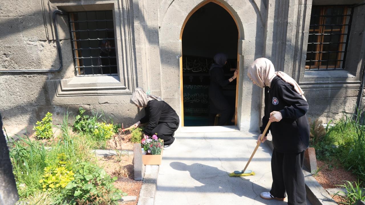 Kayseri Kız Anadolu İmam Hatip Lisesi öğrencileri, hazırladıkları "Tarihe Toz Kondurmuyoruz Projesi" kapsamında kentteki türbelerin temizlik ve çevre düzenlemesine yardım ediyor.