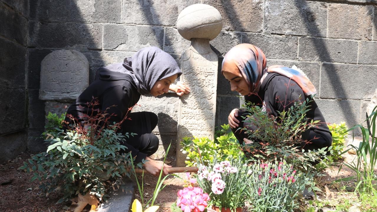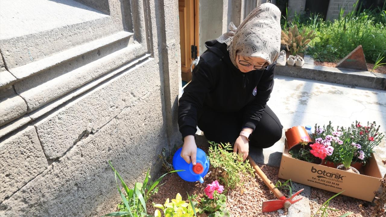 Kapısını açtıkları türbeleri hürmetle süpüren, tozunu alan, çevre düzenlemesini yapan ve bahçelerine çiçek diken öğrenciler, daha sonra kabirlerde Kur`an-ı Kerim okuyarak dua ediyor.