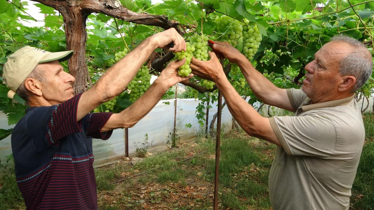 Karadut, erik gibi ürünlerin ardından yine örtü altı yetiştirilen beyaz üzümde hasat başladı.