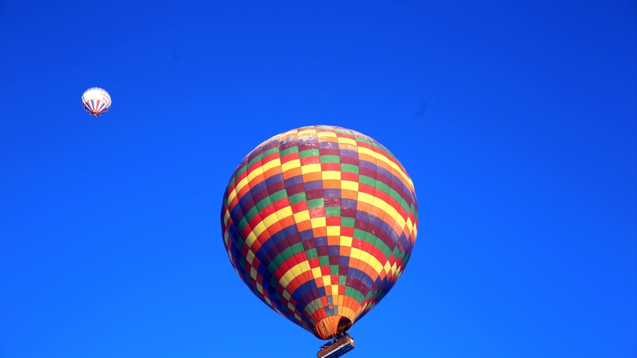 Sabah saatlerinde Göreme beldesindeki balon kalkış alanındaki hazırlıkların ardından peş peşe Kapadokya semalarına yükselen sıcak hava balonları, yaklaşık bir saat boyunca gökyüzünde süzüldü.