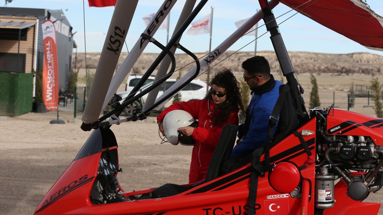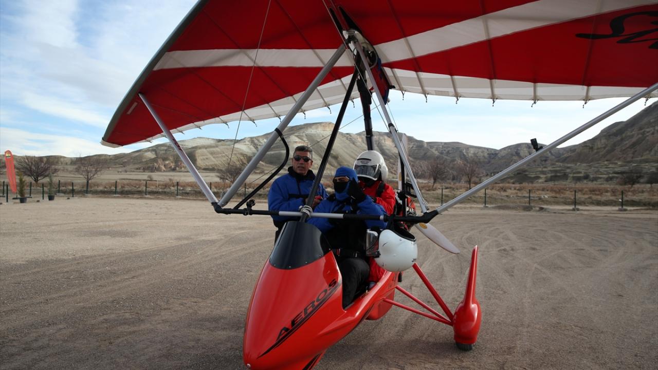 Türkiye'nin peri bacalarıyla ünlü turizm merkezlerinden Kapadokya'ya gelen yerli ve yabancı turistler, bölgeyi "microlight (motorlu hafif hava aracı)" ile havadan keşfetme fırsatı yakalıyor.