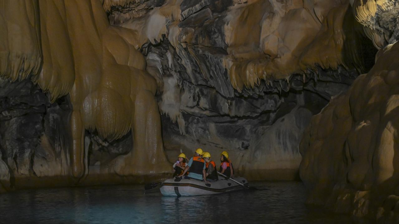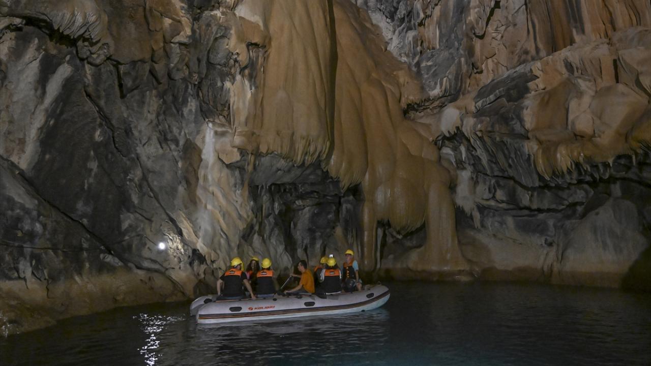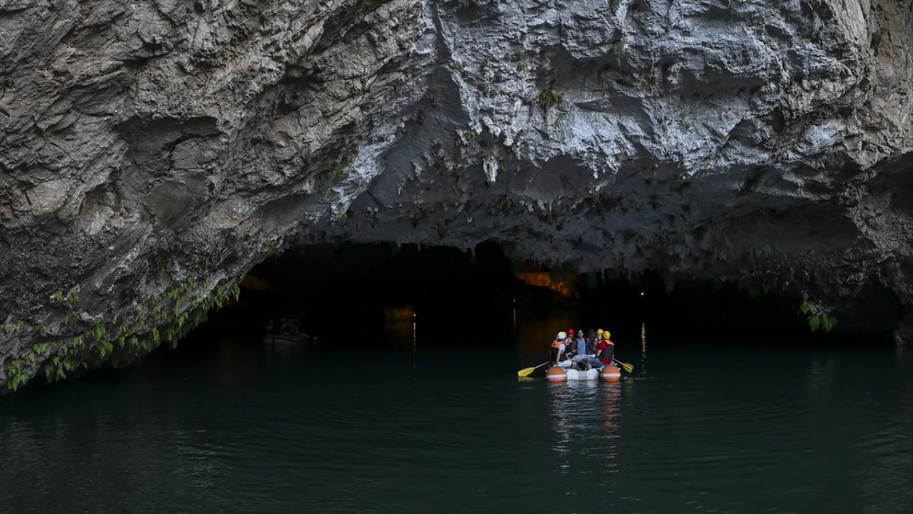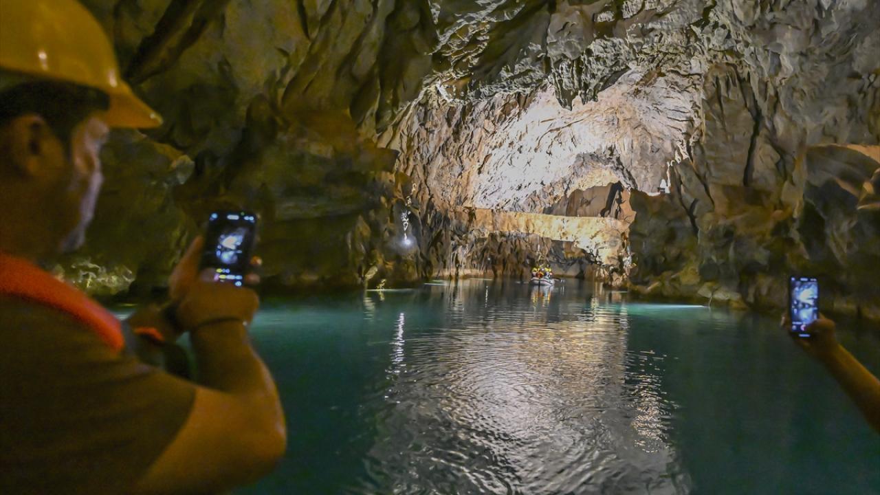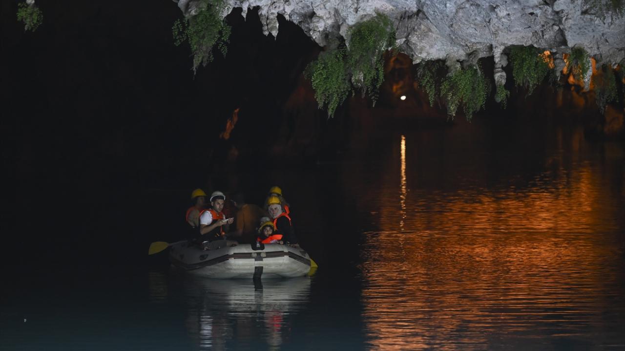 Mağaraya 200 metre uzunluğunda bir yer altı gölü üzerinden botla giriliyor.