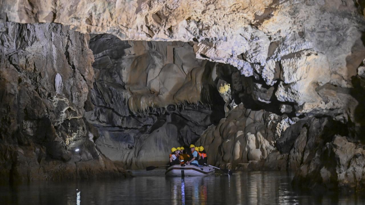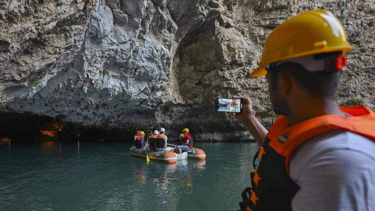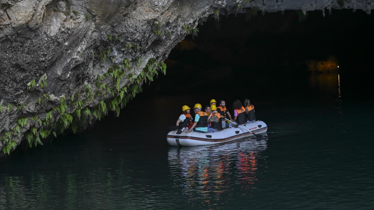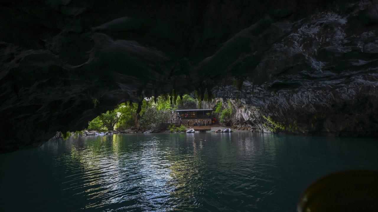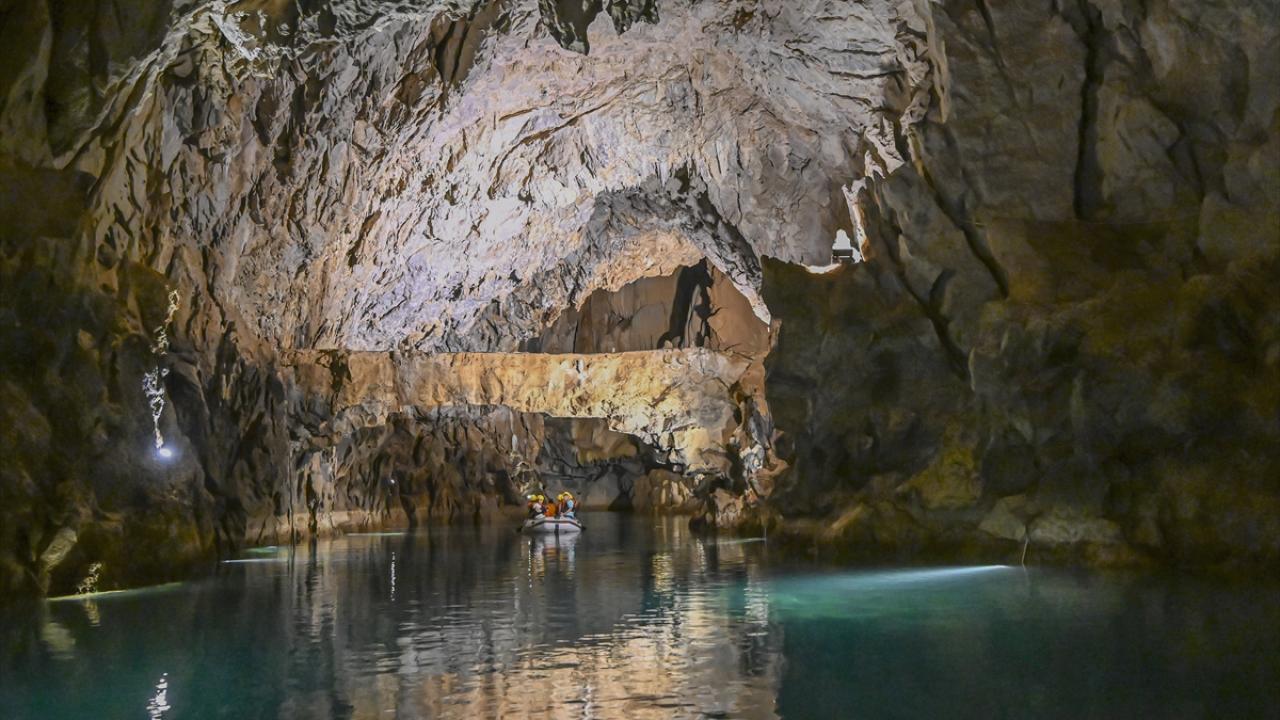 Mağaraya 200 metre uzunluğunda bir yer altı gölü üzerinden botla giriliyor.