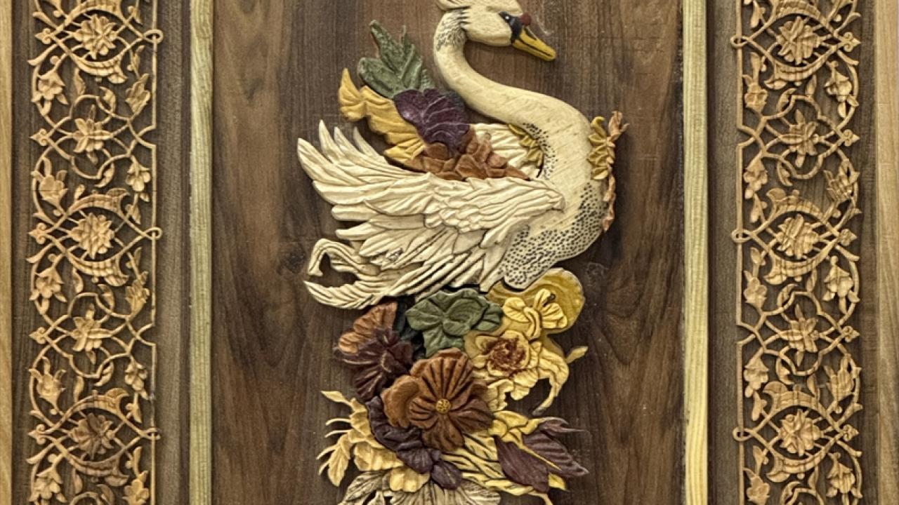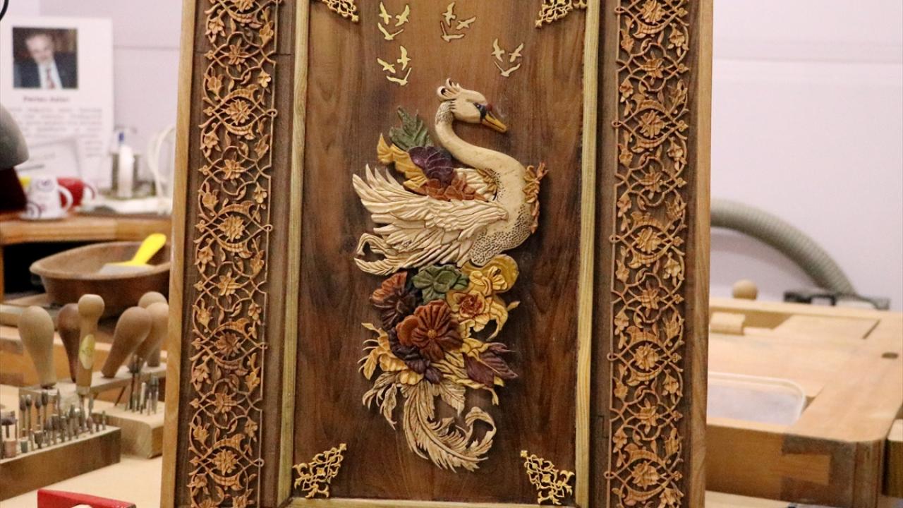 Eserini Türk barok üslubunun simgelerinden kuğu motifiyle zenginleştiren Aslan, yaklaşık üç aylık bir çalışmanın ardından ahşap tablosunu tamamladı.