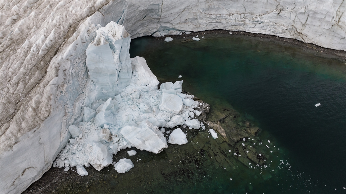 Horseshoe Adası`nda belirlenen test alanlarında İHA görüntüleme yöntemiyle kar ve buzul alanların izlendiği projenin ilk sonuçları, 2022 ve 2023 yılları arasında yaklaşık 100 metrekarelik kar ve buzul alanlarında ortalama 7 metreküplük azalma olduğuna işaret ediyor.
