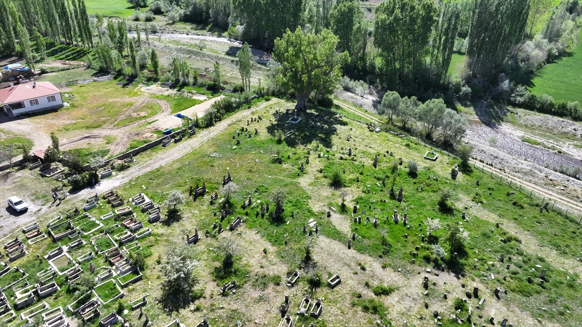 Kayseri'nin Develi ilçesinde 750 yıllık karakavak anıt ağacının gölgesindeki mezarlıkta, Türk boylarının damgalı mezar taşları yüzyıllardır ayakta duruyor.