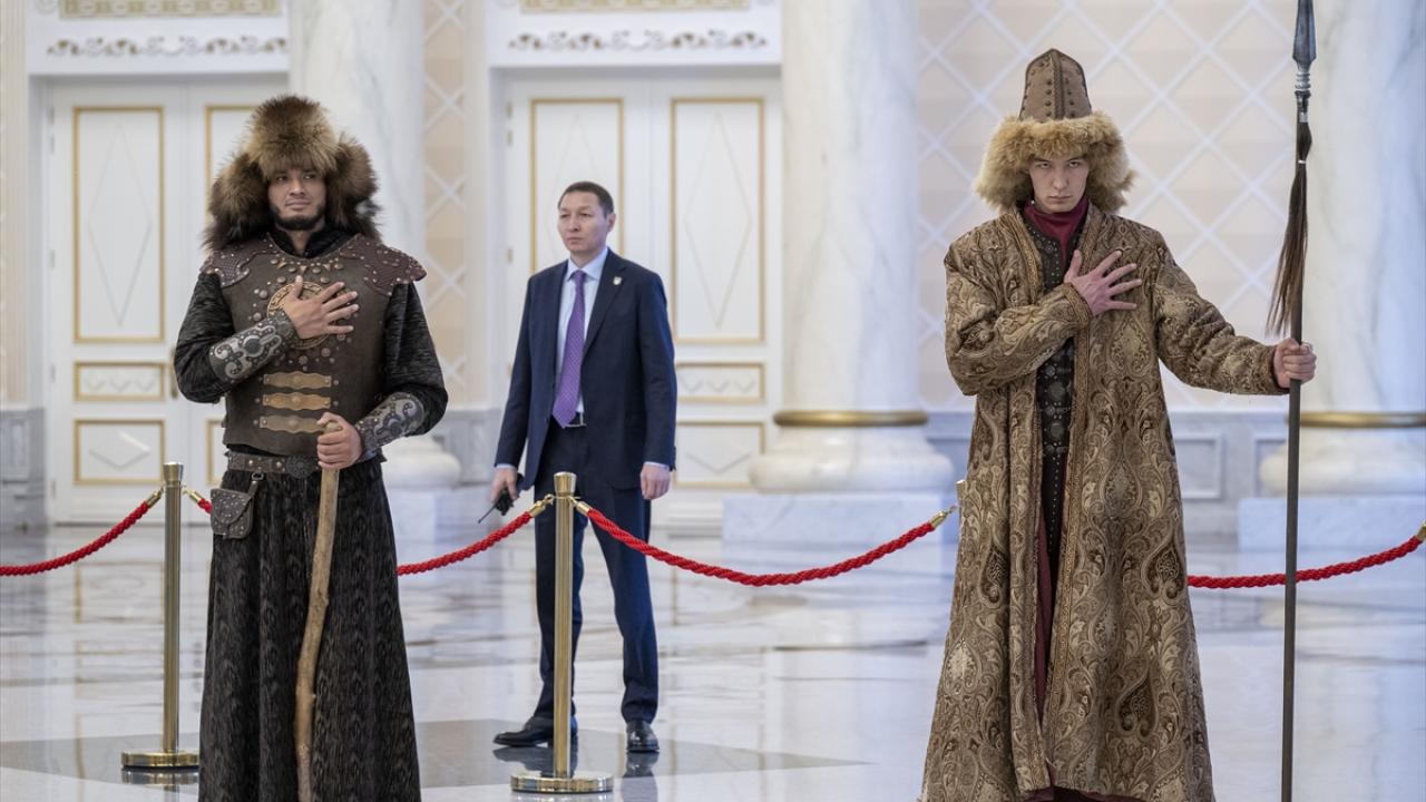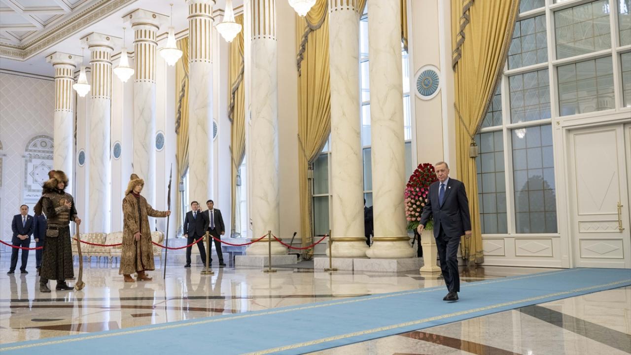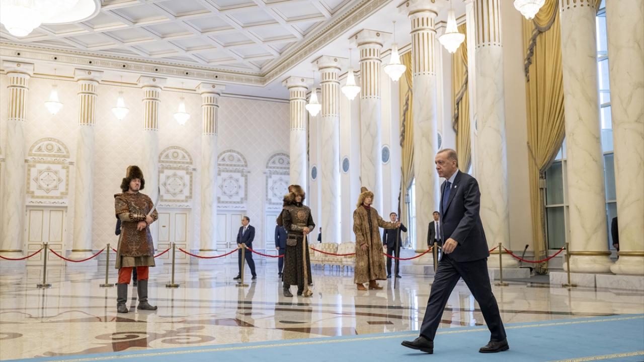 Cumhurbaşkanı Recep Tayyip Erdoğan, Akorda Cumhurbaşkanlığı Sarayı`na gelişinde Tokayev tarafından karşılandı.