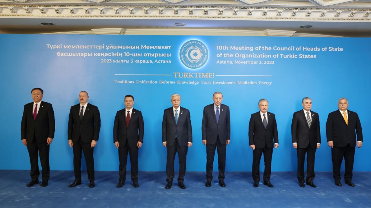 Kazakistan Cumhurbaşkanı Kasım Cömert Tokayev`in ev sahipliğinde "Türk Devri" temasıyla düzenlenen zirve öncesinde liderler, aile fotoğrafı için bir araya geldi.