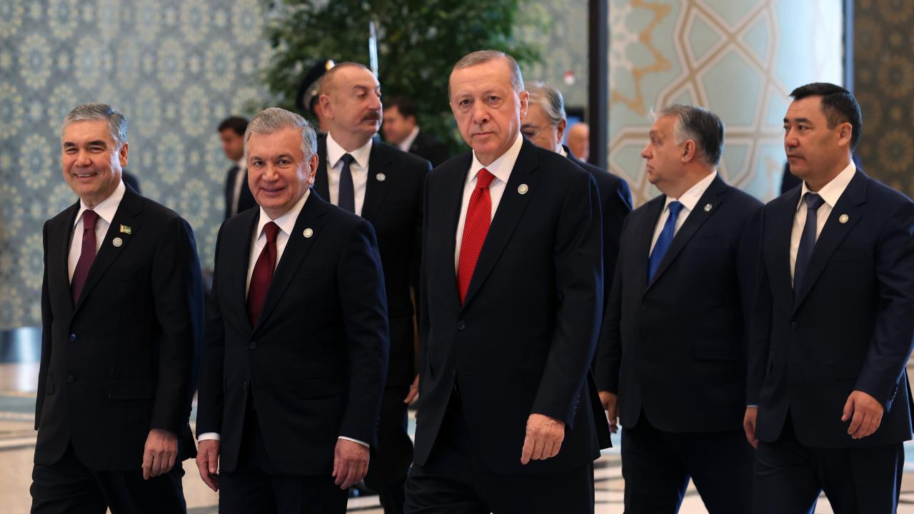 Kongre Merkezi`nde çekilen aile fotoğrafında, Cumhurbaşkanı Erdoğan, Özbekistan Cumhurbaşkanı Mirziyoyev, Azerbaycan Cumhurbaşkanı İlham Aliyev, Kazakistan Cumhurbaşkanı Kasım Cömert Tokayev ve Kırgızistan Cumhurbaşkanı Sadır Caparov ile gözlemci ülkeler Türkmenistan Ulusal Konseyi Halk Maslahatı Başkanı, eski Türkmenistan Cumhurbaşkanı Gurbangulı Berdimuhamedov ve Macaristan Başbakanı Viktor Orban yer aldı.