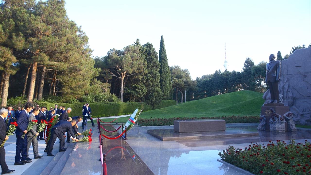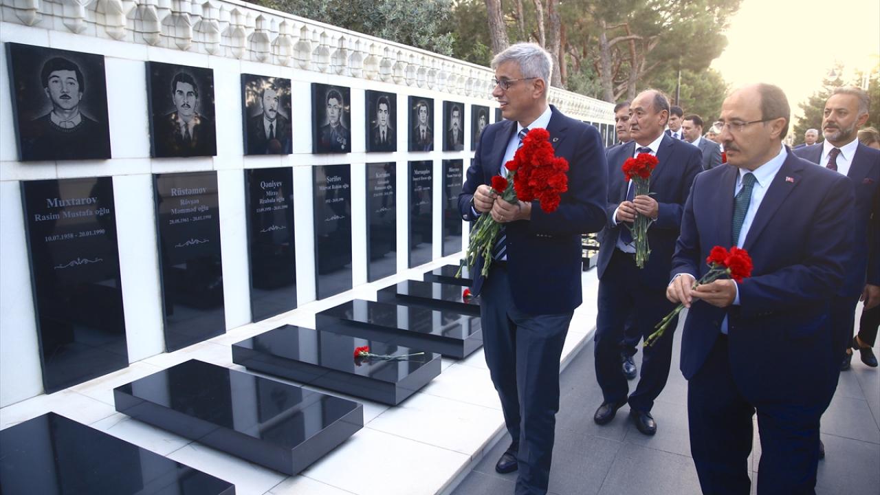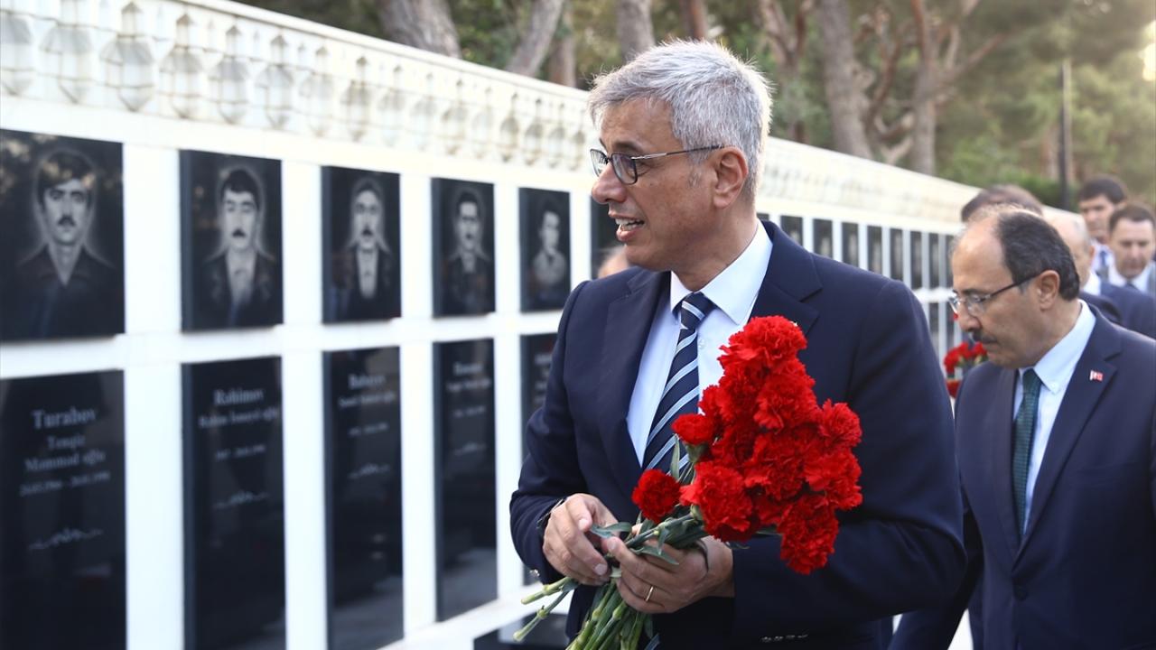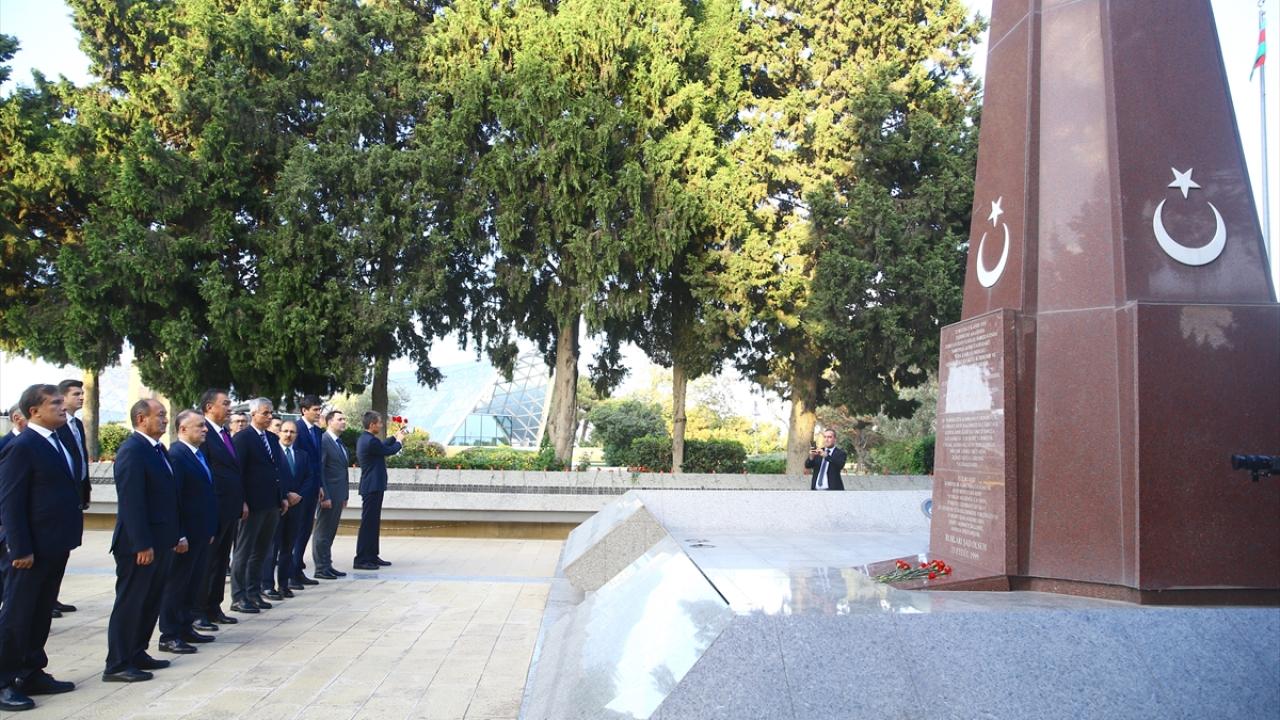 Haydar Aliyev`in anıt mezarına çelenk bırakan bakanlar, daha sonra 20 Ocak şehitlerinin defnedildiği Bakü Şehitler Hiyabanı`nda şehit mezarlarına çiçek bıraktılar.