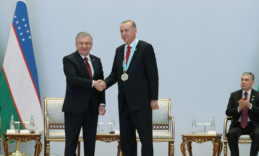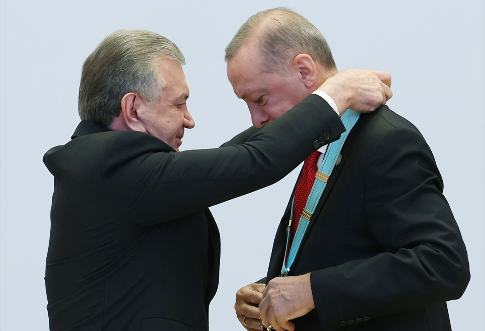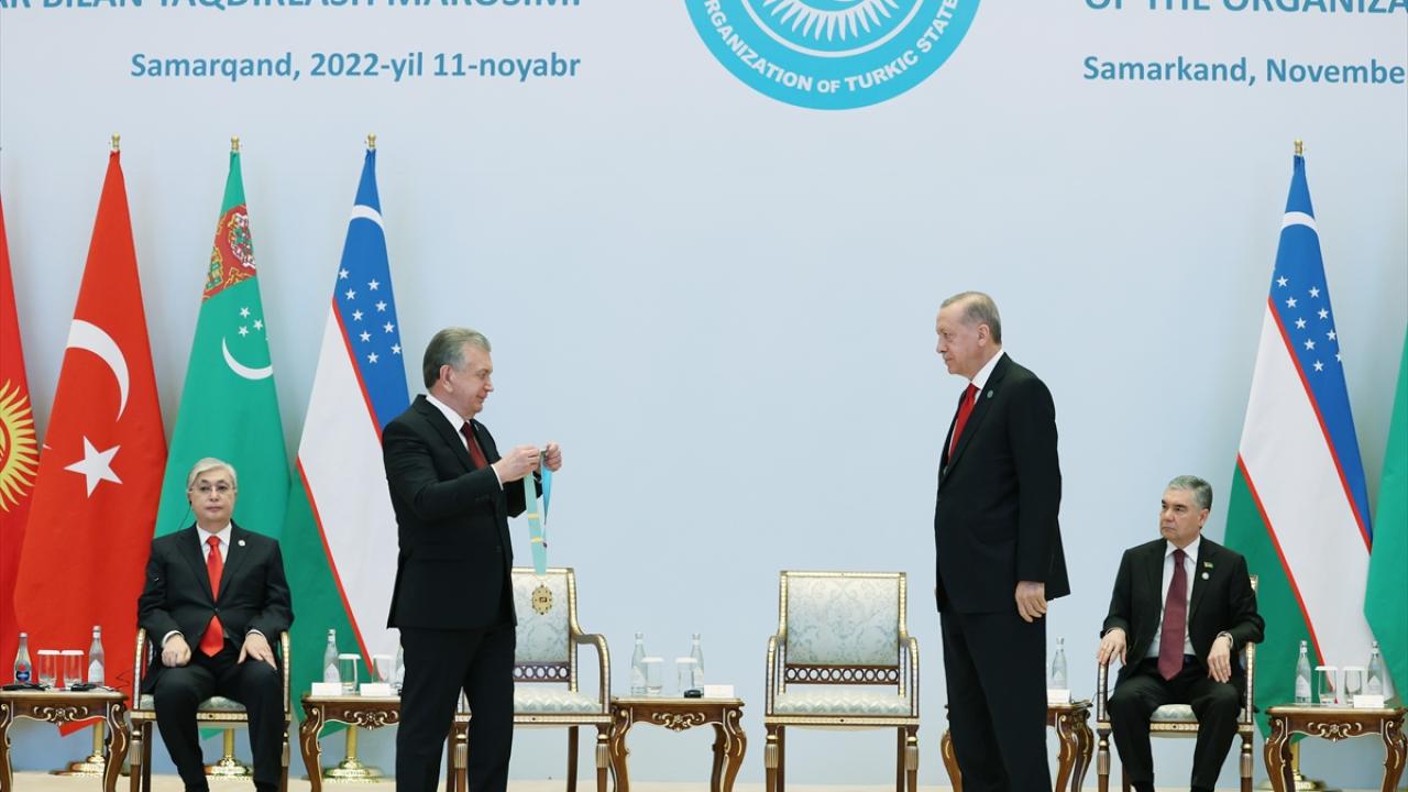 Cumhurbaşkanı Recep Tayyip Erdoğan'a, Özbekistan'ın Semerkant şehrinde, Türk dünyasına hizmetlerinden dolayı "Türk Dünyası Ali Nişanı" tevcih edildi. Erdoğan, "Ebedi Şehir" Kongre Merkezi'nde düzenlenen tören öncesinde Özbekistan Cumhurbaşkanı Şevket Mirziyoyev, Azerbaycan Cumhurbaşkanı İlham Aliyev ve Macaristan Başbakanı Viktor Orban ile sohbet etti.