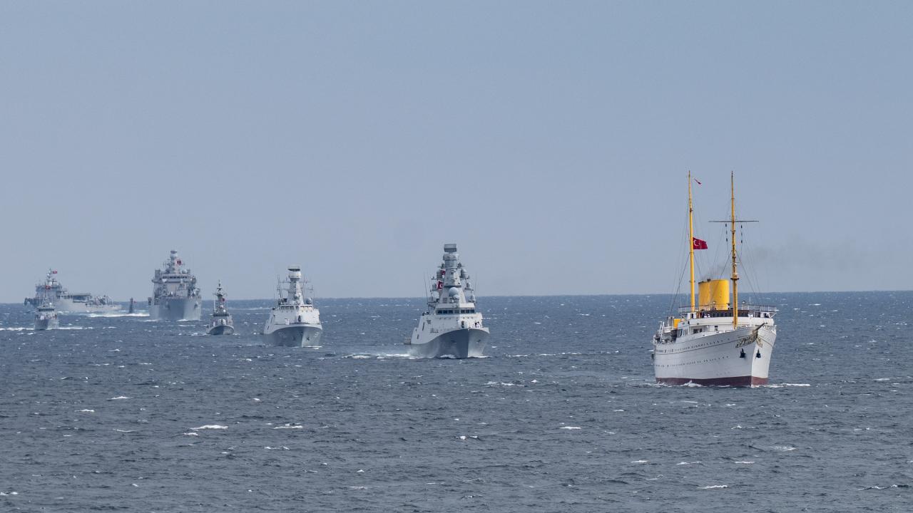 TEKNOFEST Mavi Vatan kapsamında İstanbul Boğazı'nda gerçekleştirilecek geçit töreni için onarımı tamamlanan Gazi Mustafa Kemal Atatürk'ün yatı TCG Savarona, TCG Oruçreis, TCG İstanbul, TCG Heybeliada, TCG Kalkan, TCG Alanya, TCG Sancaktar ve TCG Hızırreis denizaltısı Karadeniz açıklarında görüntülendi.