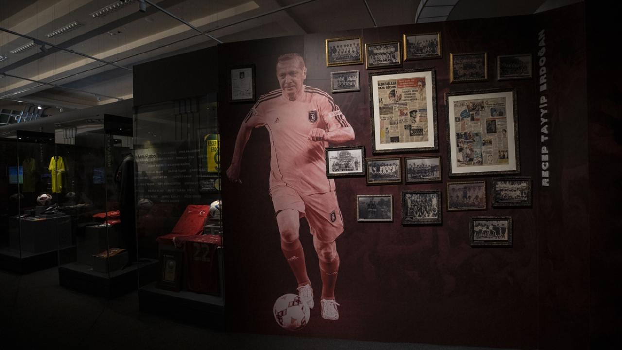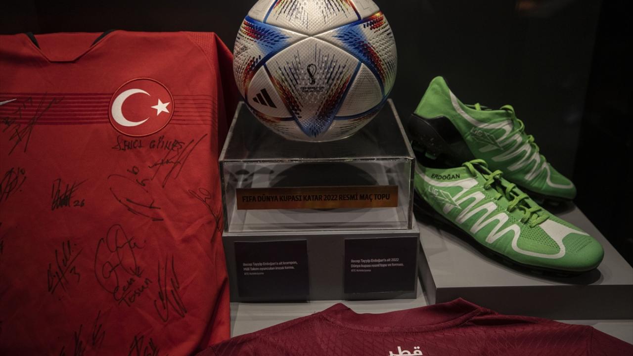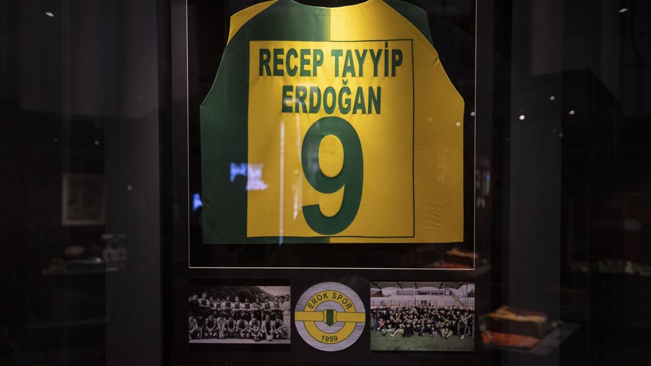 Cumhurbaşkanı Erdoğan`ın İETT Futbol Takımı ve Erok Spor`da futbol oynadığı yıllara ait fotoğraflar ve gazete kupürleri ile siyasetçi olduğu dönemde yer aldığı dostluk maçlarında kullandığı futbol malzemeleri de sergilenen eserler arasında bulunuyor.