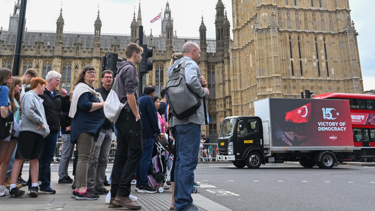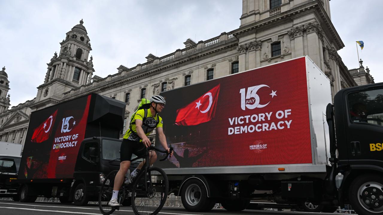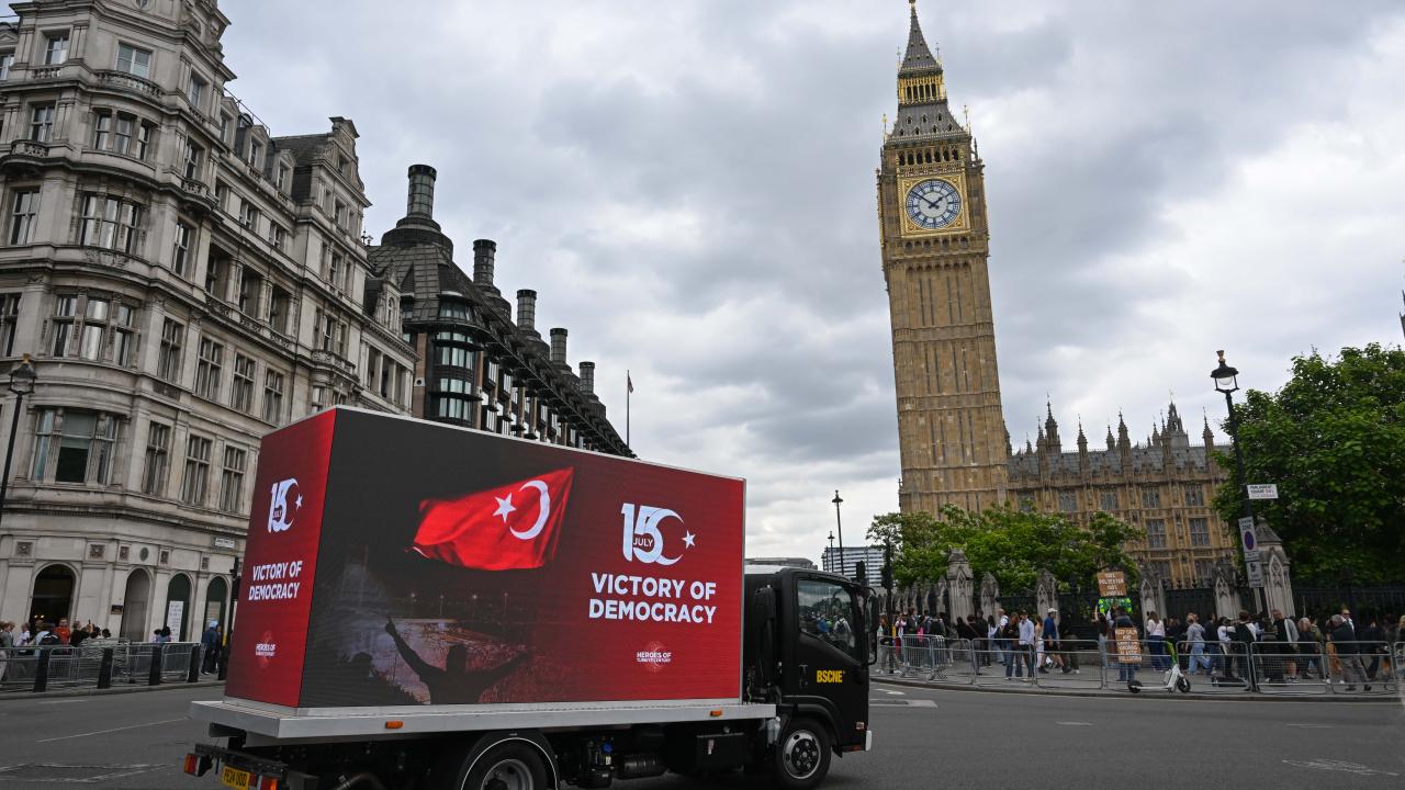 Londra`da bakanlıklar, devlet kurumları, parlamento ile tarihi ve turistik yapıların bulunduğu bölgelerde dolaşan LED ekranlı araçlar, FETÖ`nün 15 Temmuz darbe girişimini ve Türk halkının buna karşı mücadelesini anlattı.