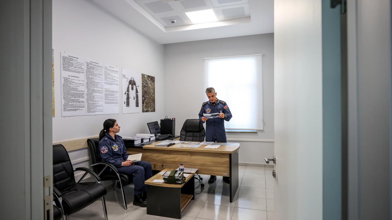 "Uçuş eğitiminden önce sabah brifingiyle günü başlatıyoruz. Her gün saat 08.30`da filoya gelerek 30 ila 45 dakikalık genel hazırlık brifingi yapıyoruz. Daha sonra her kursiyer pilota bir öğretmen pilot eşliğinde eğitimlerini devam ettiriyoruz. Simülatör veya uçuş eğitimleri için 2-2,5 saat önce birebir brifinge girip 50 dakika önce uçak başı yapacak şekilde günü planlıyoruz. Uçuşun değerlendirme safhası öncesi ve sonrası 5-6 saati bulmakta. Bir saatlik uçuşun onlara maliyeti hemen hemen 6 saat oluyor. 8 aylık süreçte bütün günleri eğitimle geçen kursiyerlerimizin 1 dakika boşa geçecek zamanları yok. Hava Kuvvetlerinin en tecrübeli öğretmen pilotları 193. Öncel Filo Komutanlığında görev yapıyor ve biz dünyanın en iyi savaş pilotlarını burada yetiştirdiğimizi iddia ediyoruz."
